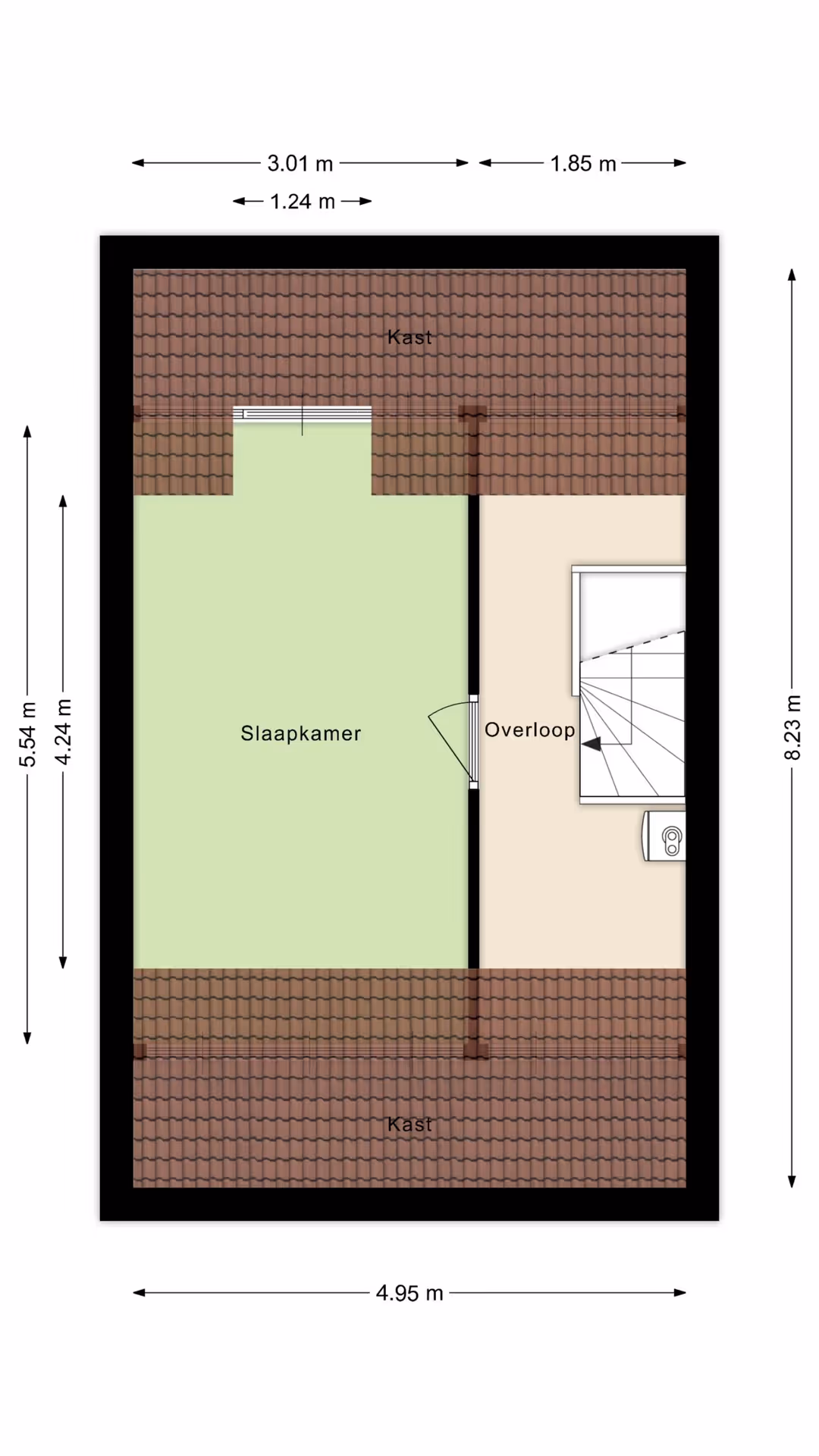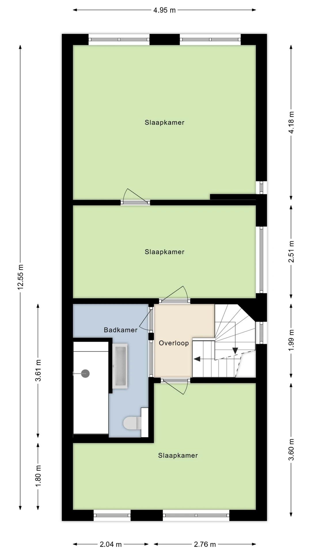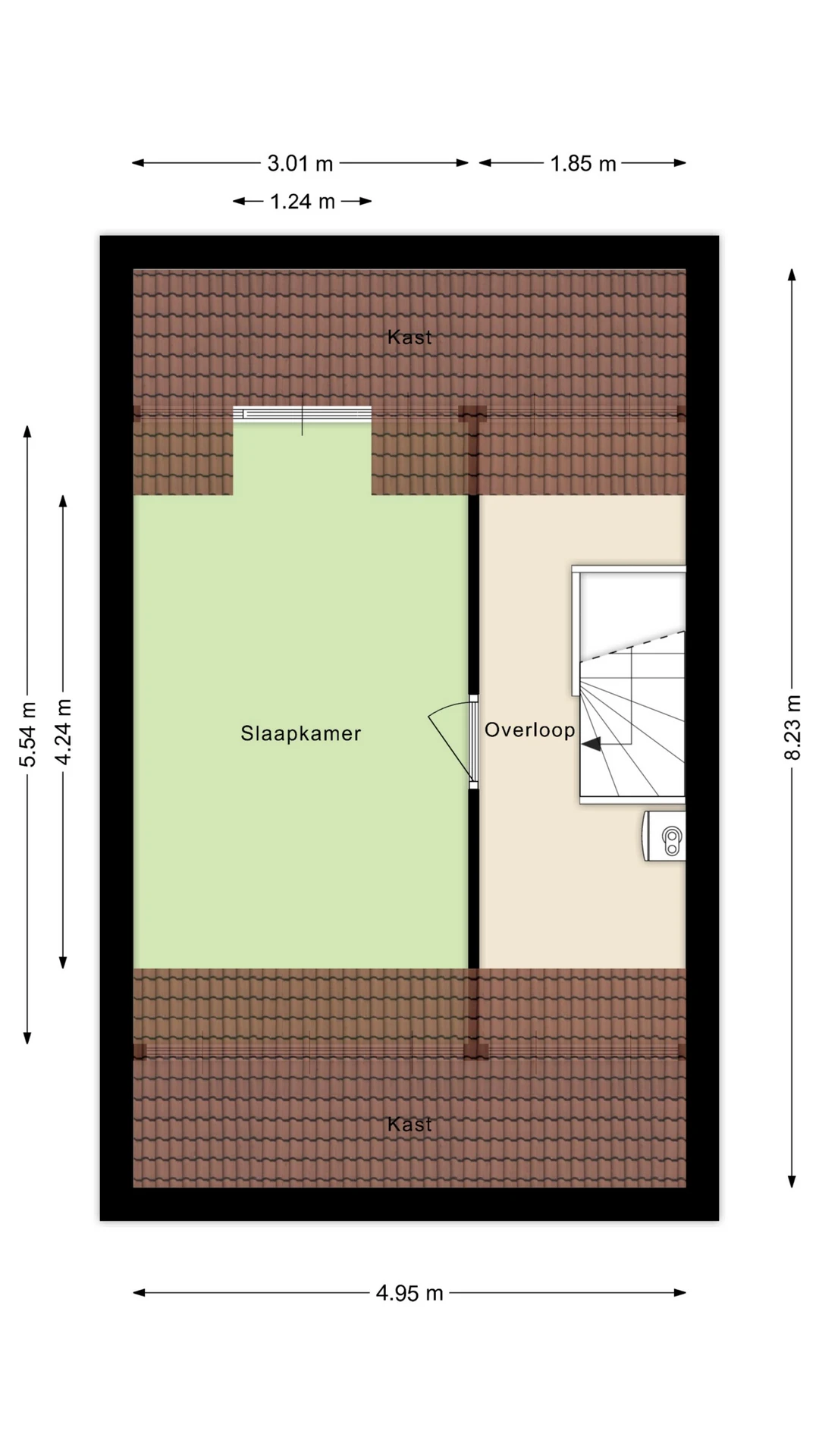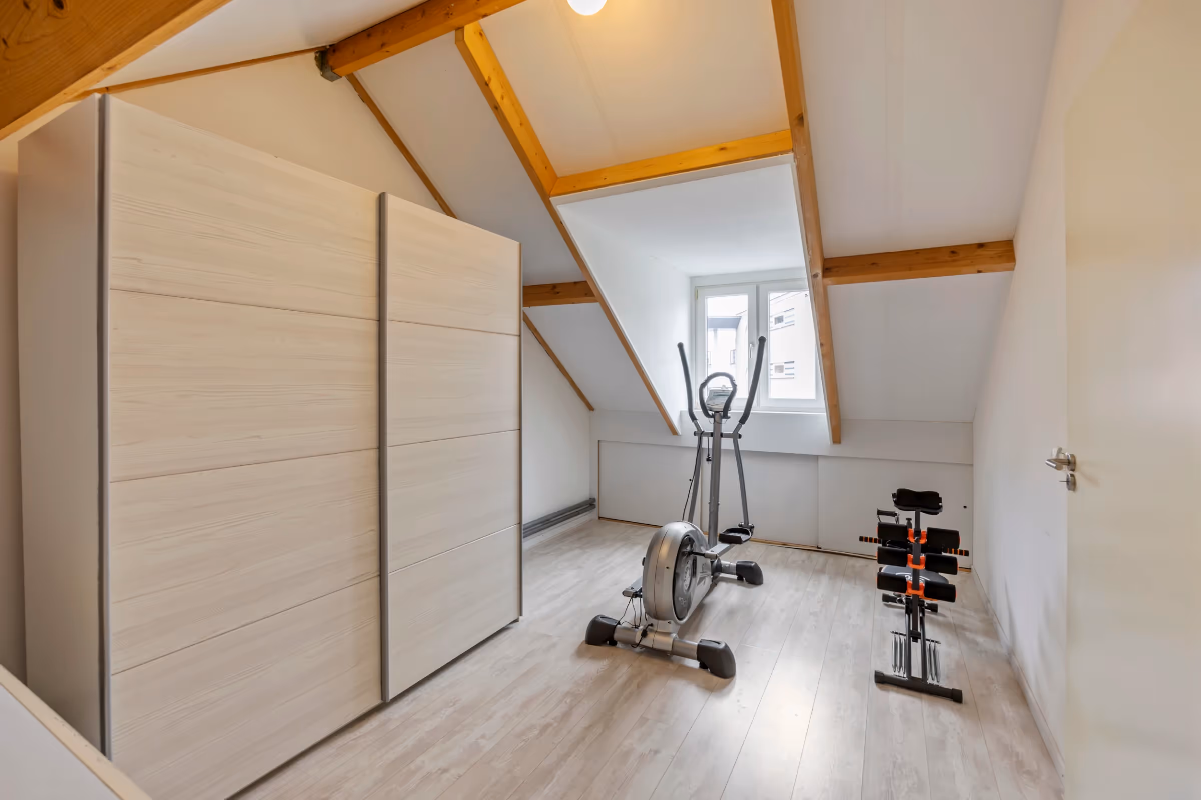 Middels een vaste trap is de 2e verdieping te bereiken. Hier ligt nog een extra slaapkamer en deze is extra groot, mede door een dakkapel. Deze dakkapel bevat tevens een rolluik. Op de overloop van deze zolderverdieping is de CV combiketel geplaatst (Remeha, eigendom, 2007) en ook hier zijn aansluitpunten voor het witgoed aanwezig.