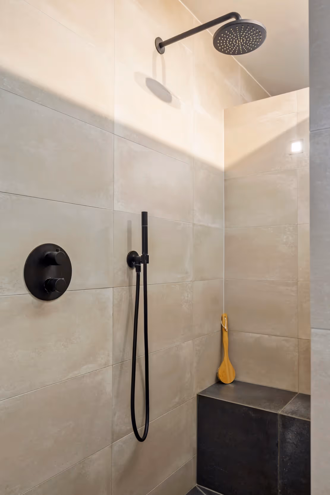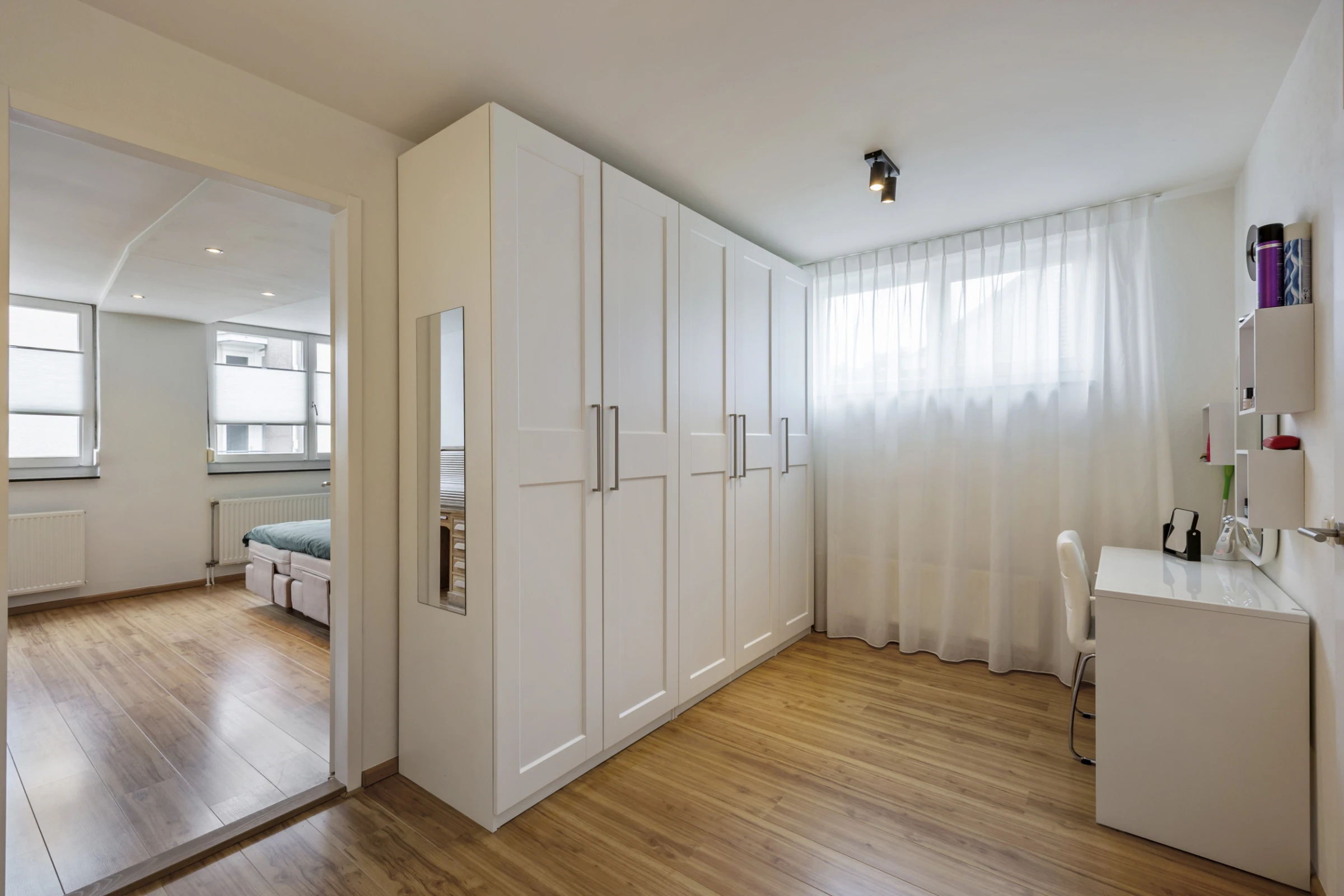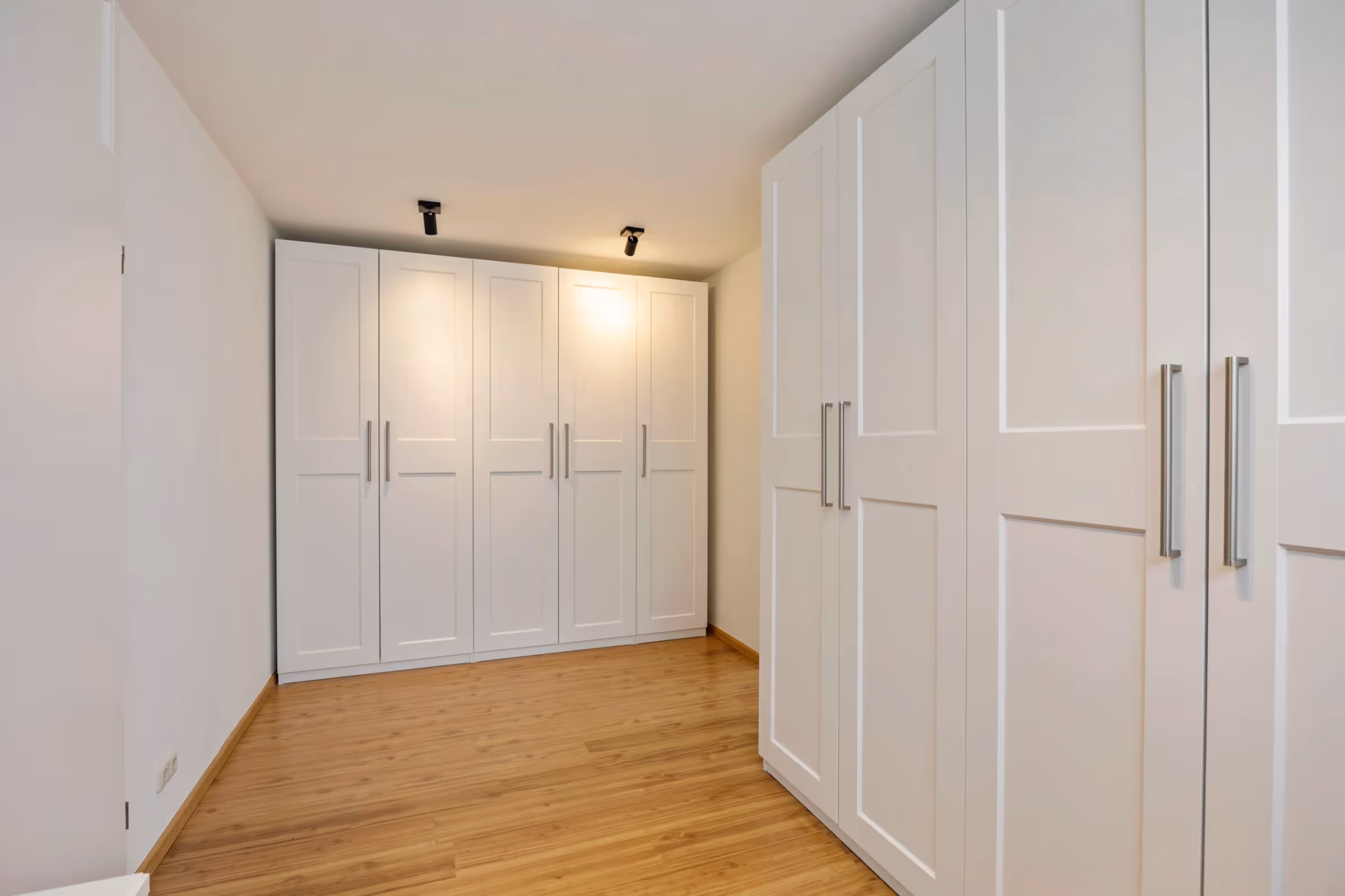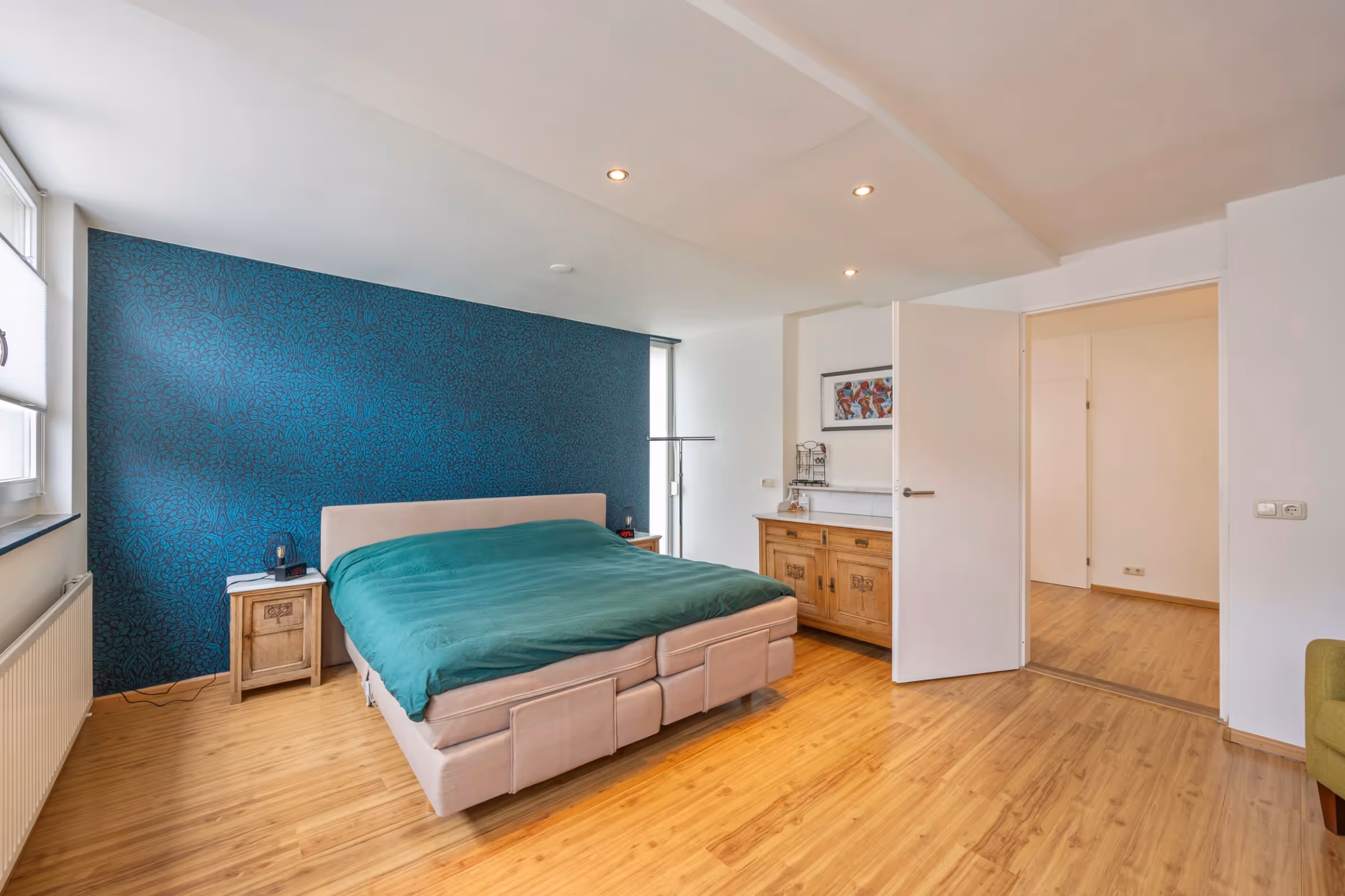 Via de overloop op de 1e verdieping zijn 2 slaapkamers, een riante kleedkamer en de moderne badkamer bereikbaar. Ook de 1e verdieping is uitgebreid aan de achterzijde, net als de begane grond. Aan de achterzijde ligt de riante hoofdslaapkamer en ook de slaapkamer aan de voorzijde is eveneens ruim bemeten. De 3e kamer is als kleed- en werkkamer in gebruik. Tenslotte ligt op deze verdieping de badkamer. Ook deze ruimte is smaakvol gerenoveerd in 2021 en bestaat uit een wastafelmeubel met dubbele wastafel, een zeer ruime inloopdouche, extra kasten en een 2e toilet.