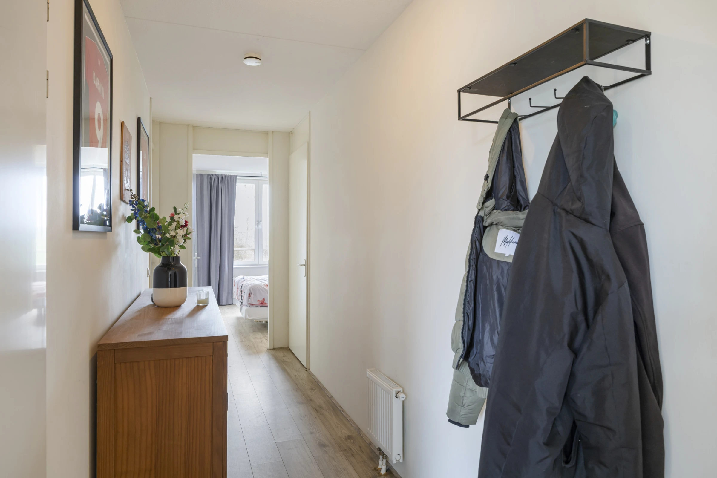 De entree van dit fijne appartement ligt op 1ste verdieping. Je komt binnen in de hal en die geeft toegang tot de diverse kamers.