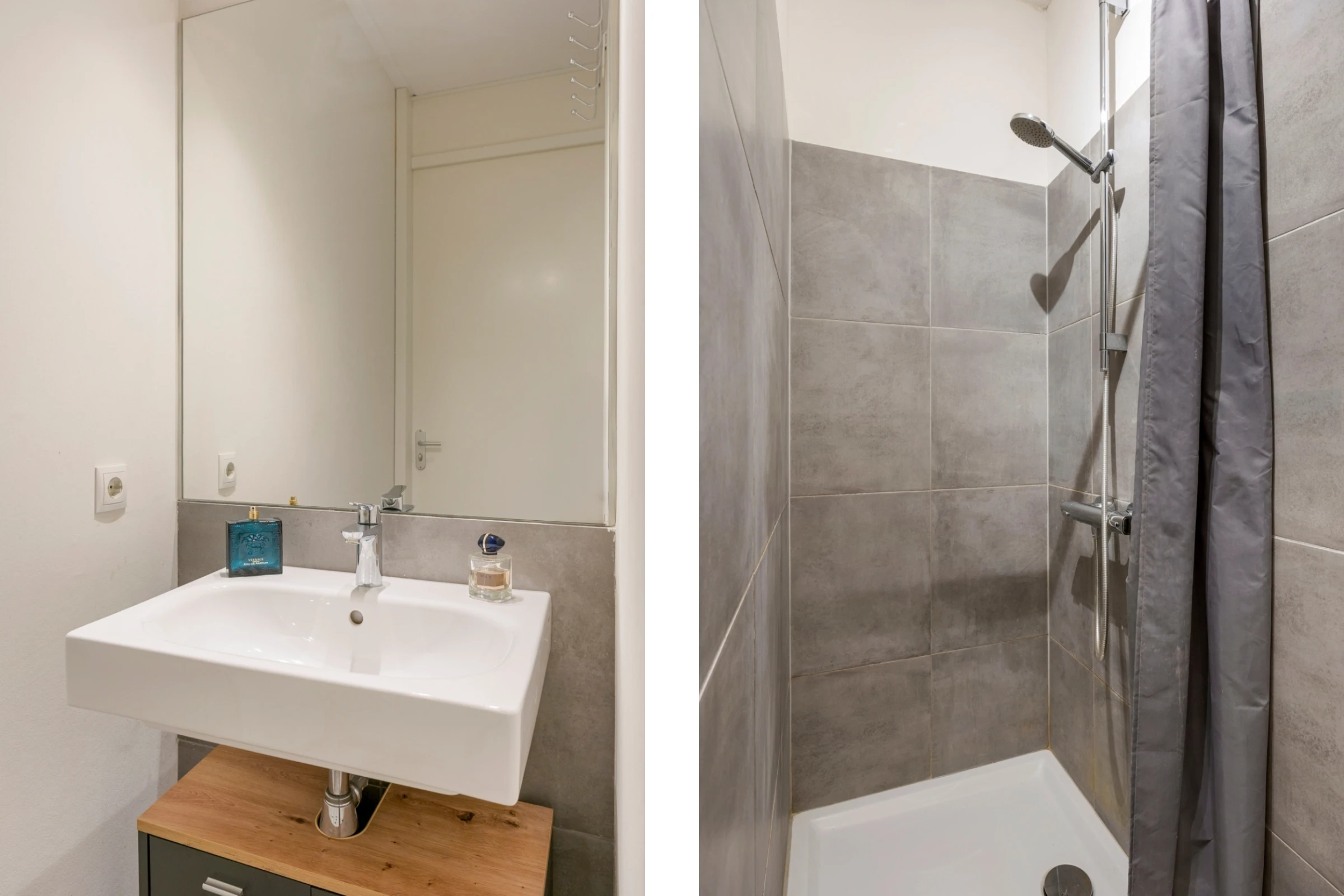 Vanuit de hal zijn vervolgens de 2 slaapkamers, de badkamer, het gastentoilet en nog een berging te bereiken. De badkamer is modern en hier zijn een inloopdouche en een wastafel aanwezig. Het toilet is separaat en voorzien van een fonteintje.