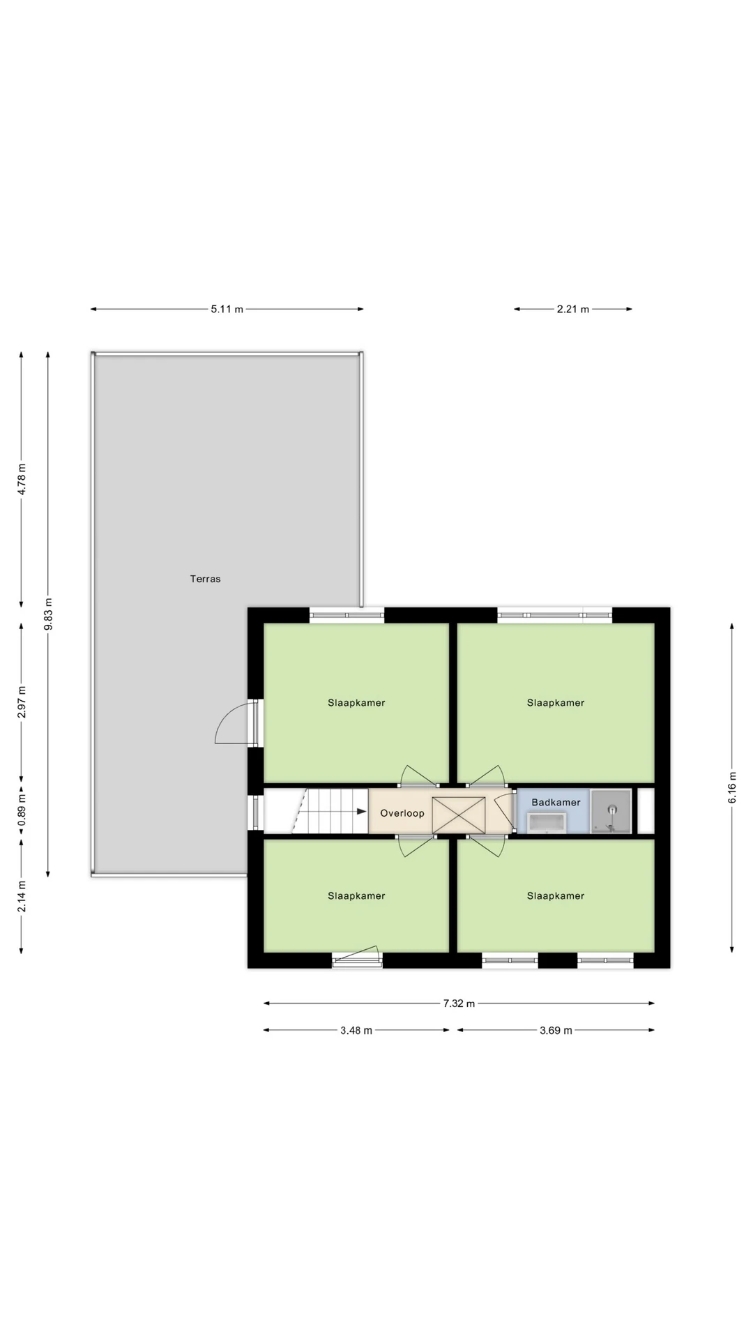 Op de eerste verdieping bevinden zich 4 nette slaapkamer en de compacte badkamer, welke is voorzien van een douche en een wastafel. Vanuit één van deze slaapkamers heb je toegang tot het royale dakterras, een ideale extra buitenplek om te ontspannen. Verder hebben de slaapkamers houten kozijnen met enkele beglazing en rolluiken.