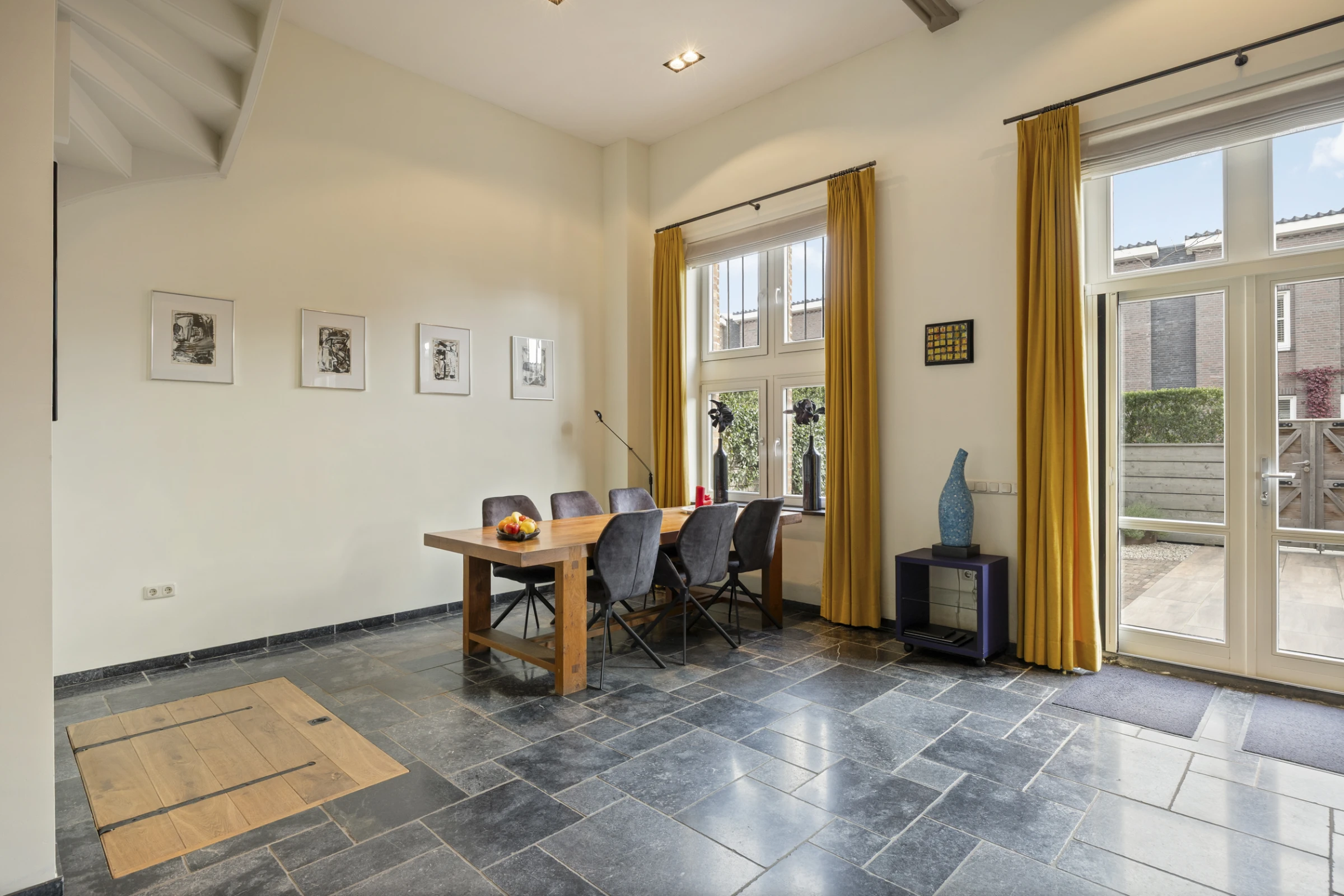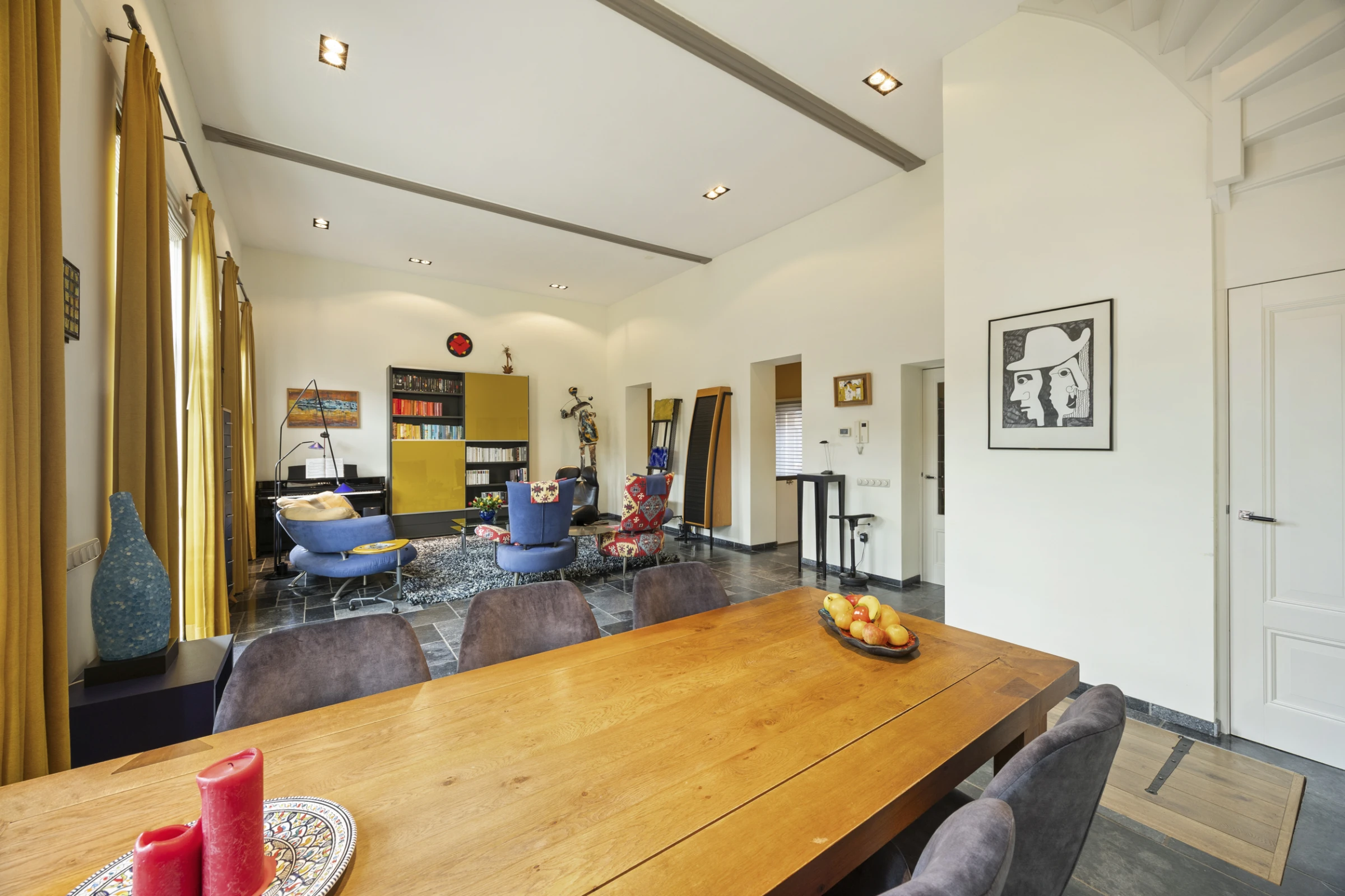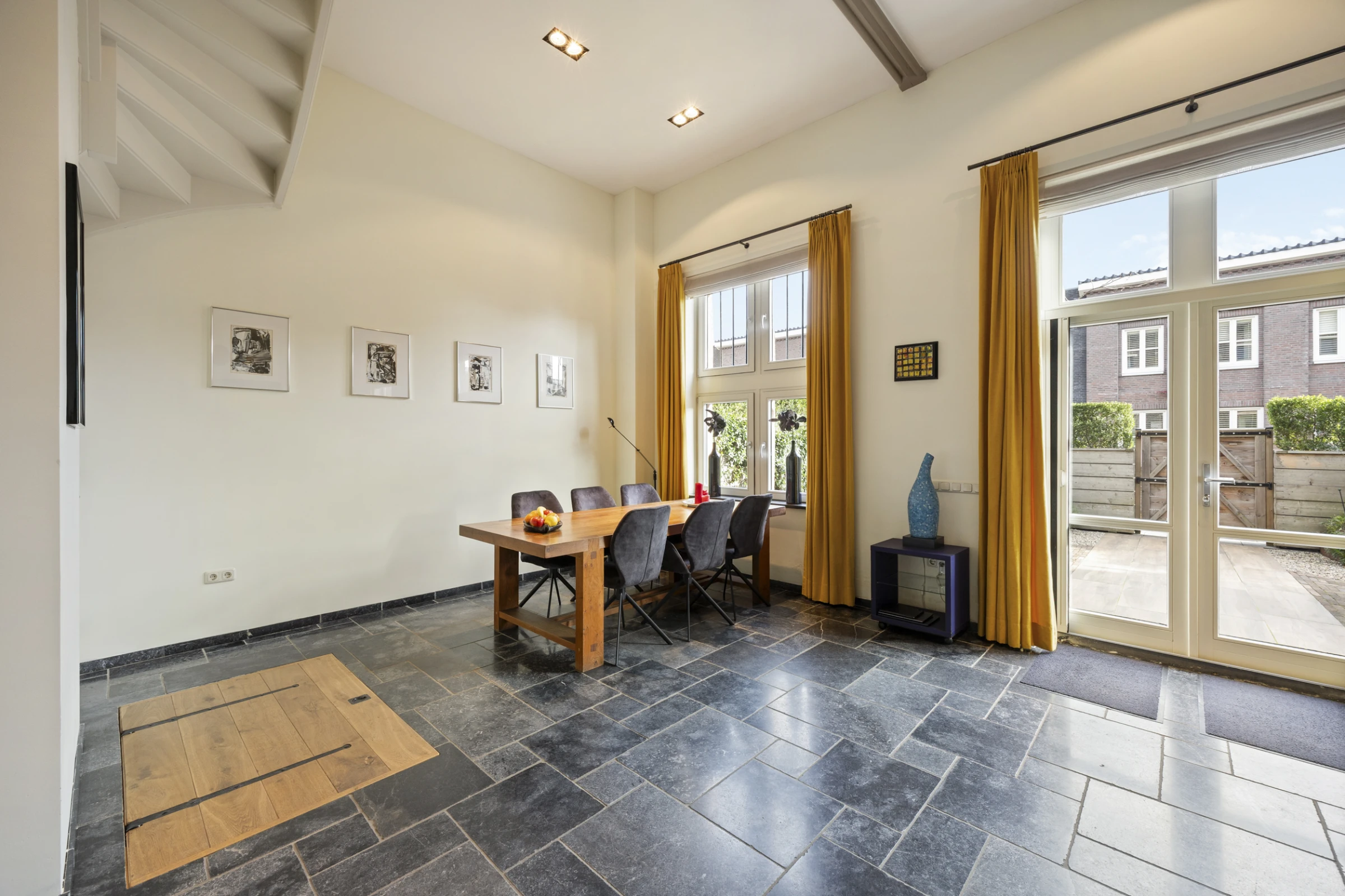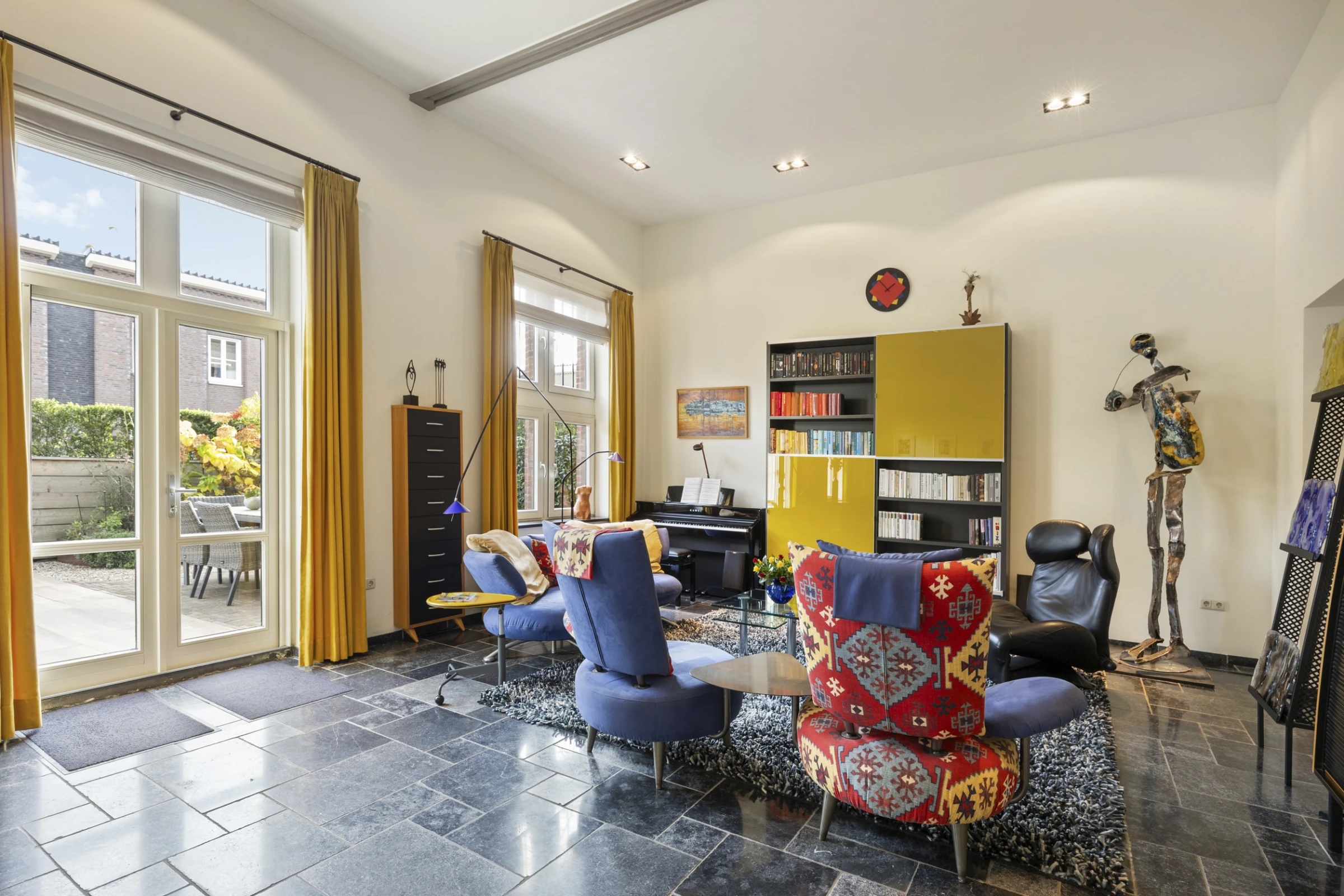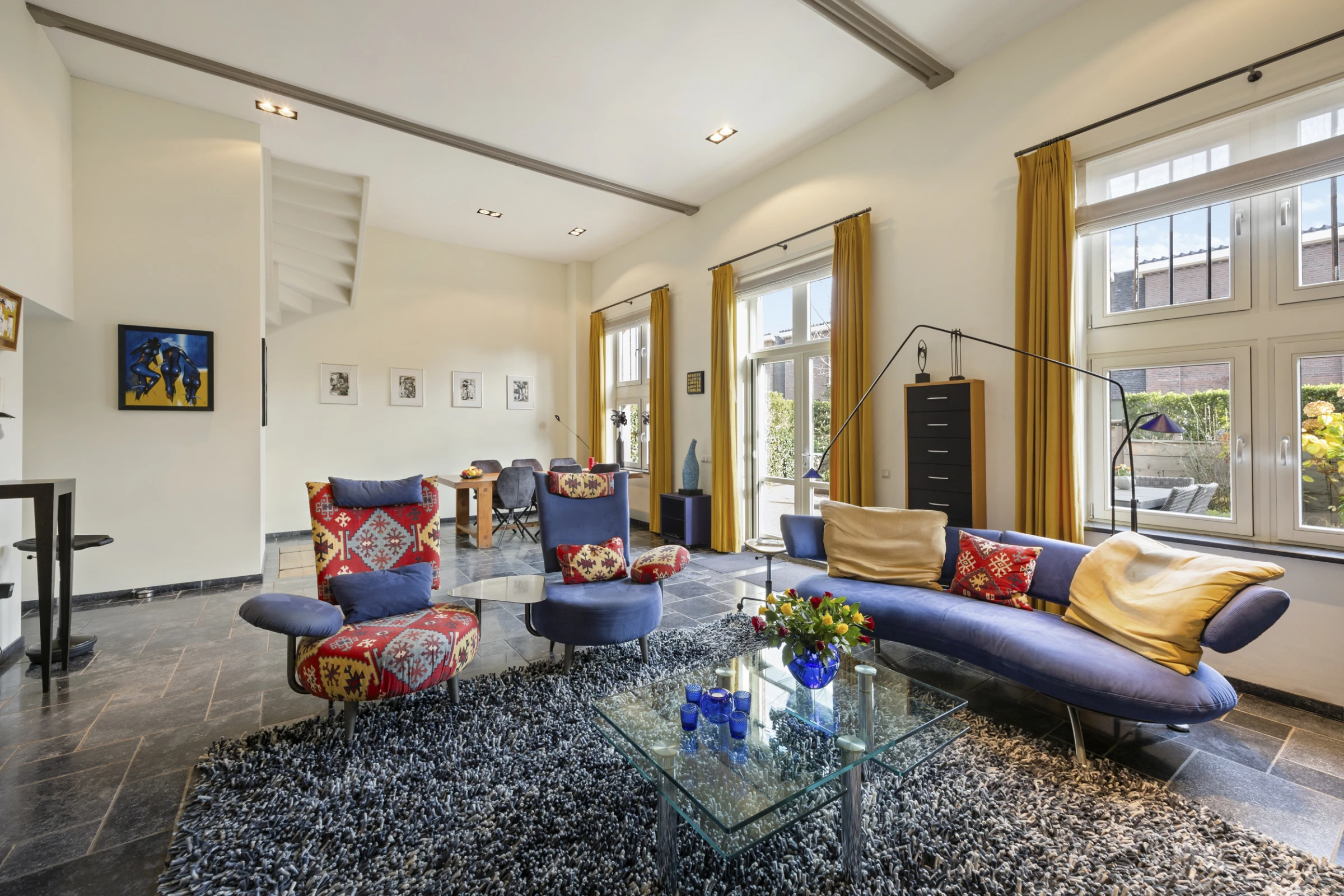 • Woonkamer met hoge plafonds