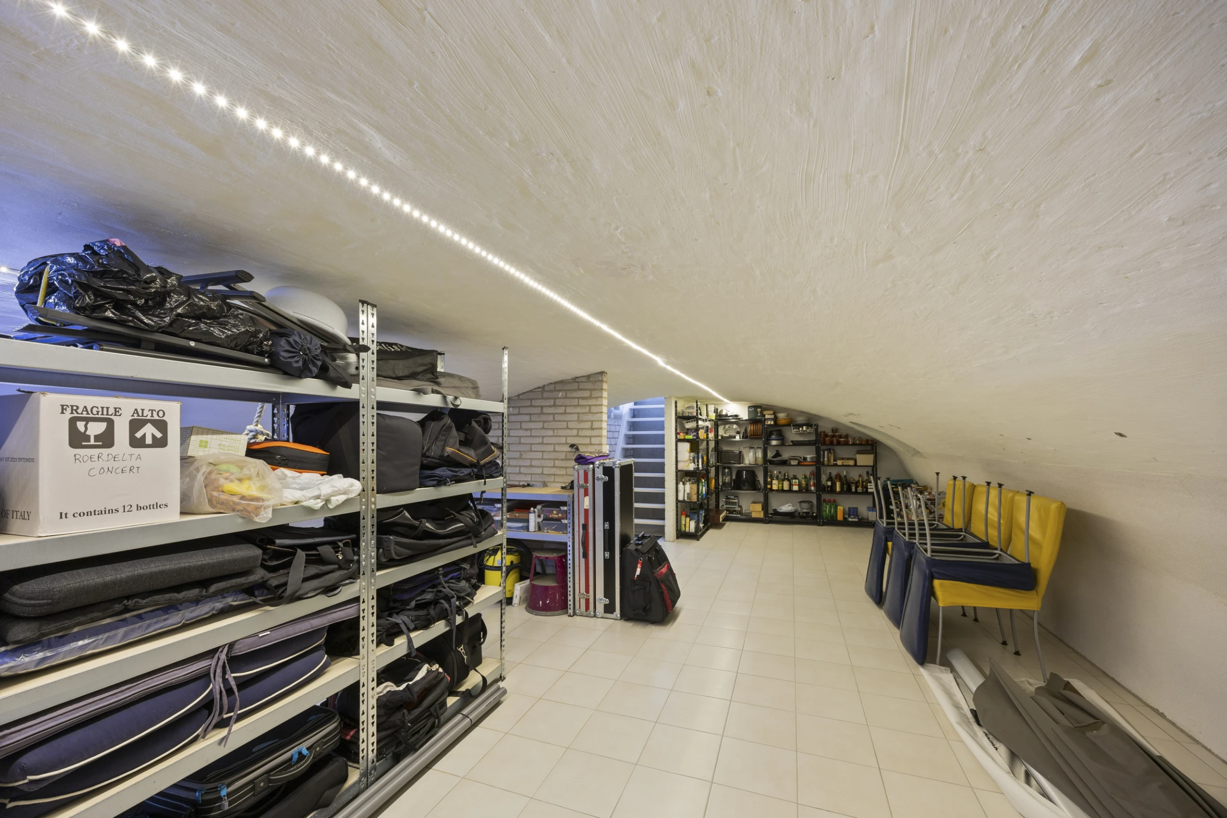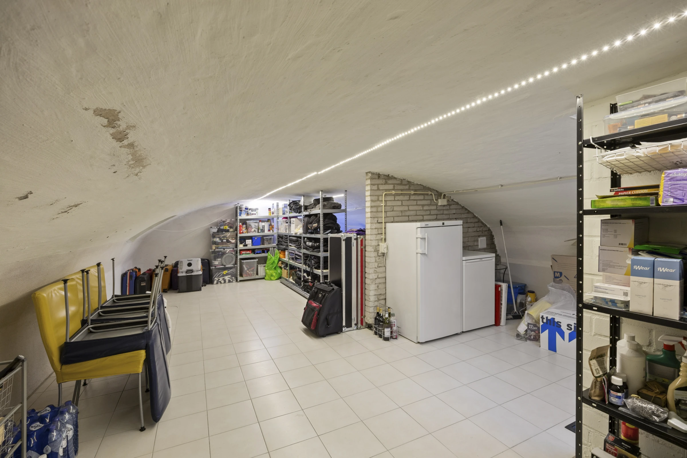 Onder de woonkamer is het gewelfde souterrain gelegen. Hier is flink wat extra bergruimte (30 m²).