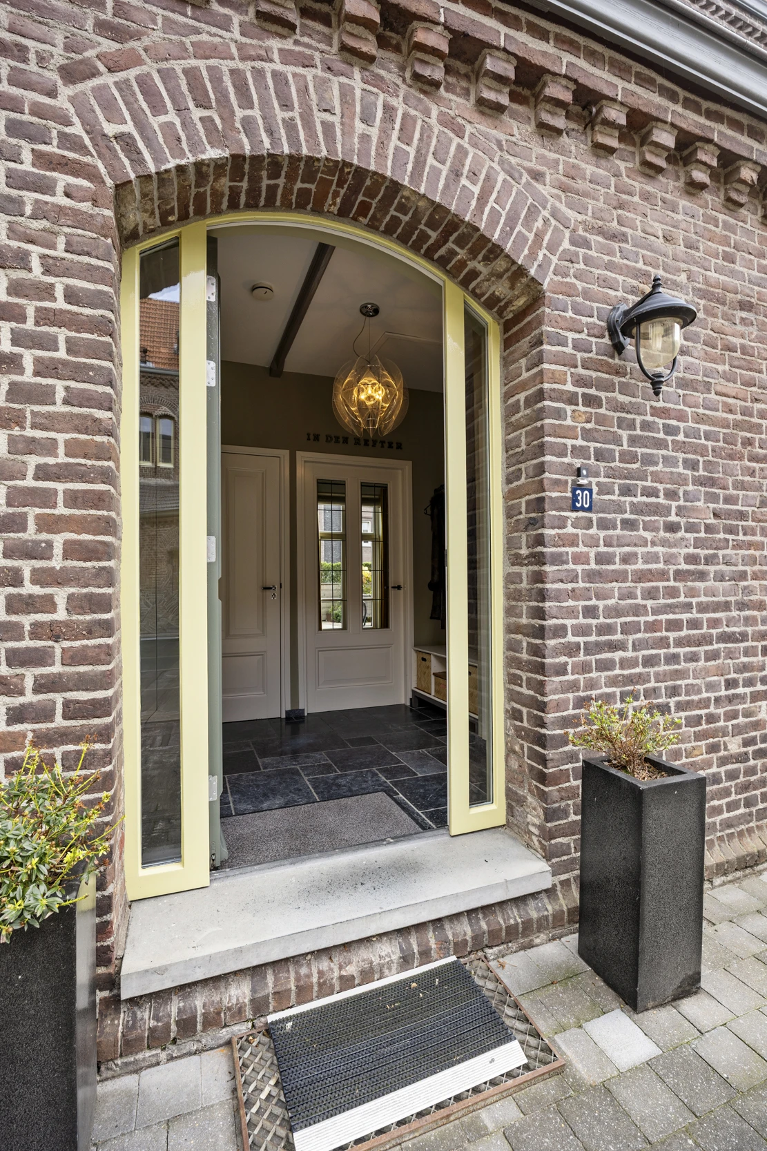 De binnenplaats van dit charmante klooster is een oase van rust. Vanaf deze binnenplaats zijn de voordeuren van de verschillende woningen te bereiken en kom je ook bij nummer 30. In de entreehal van deze karakteristieke woning, komt de charme je al tegemoet. De tegelvloer combineert prachtig met de strakke, gestucte muren en de mooie, houten trappartij. Vanuit deze hal zijn het gastentoilet, de meterkast en de woonkamer bereikbaar. De woonkamer heeft prachtige, hoge plafonds en een heerlijke lichtinval door de vele raampartijen met kruisstijlen. De getrommelde tegelvloer past prachtig bij de sfeer van de woning. Deze loopt tevens door in de keuken en de gehele begane grond is voorzien van vloerverwarming. Vanuit de woonkamer geven dubbele tuindeuren, toegang tot de achtertuin. De keuken ligt aan de voorzijde en beschikt over een modern keukenblok met hoogwaardige inbouwapparatuur: 5-pits gasfornuis en afzuigkap, combi-oven, koelkast, vriezer, vaatwasser (2024) en koffiezetapparaat (2022).
