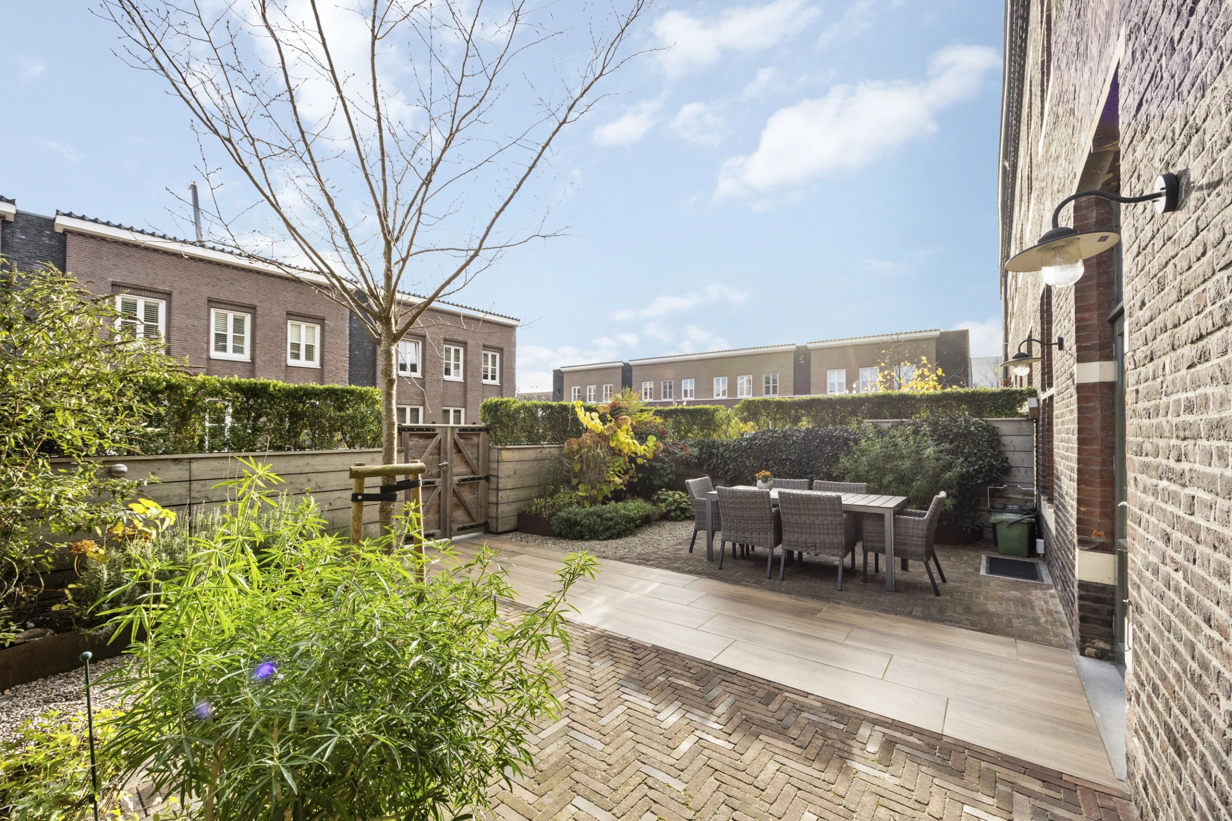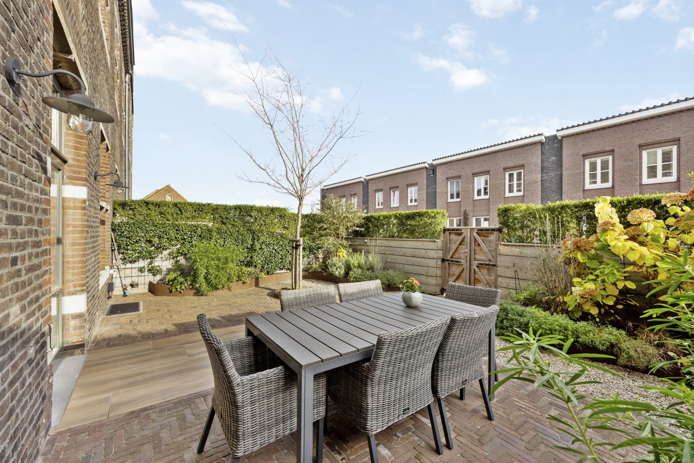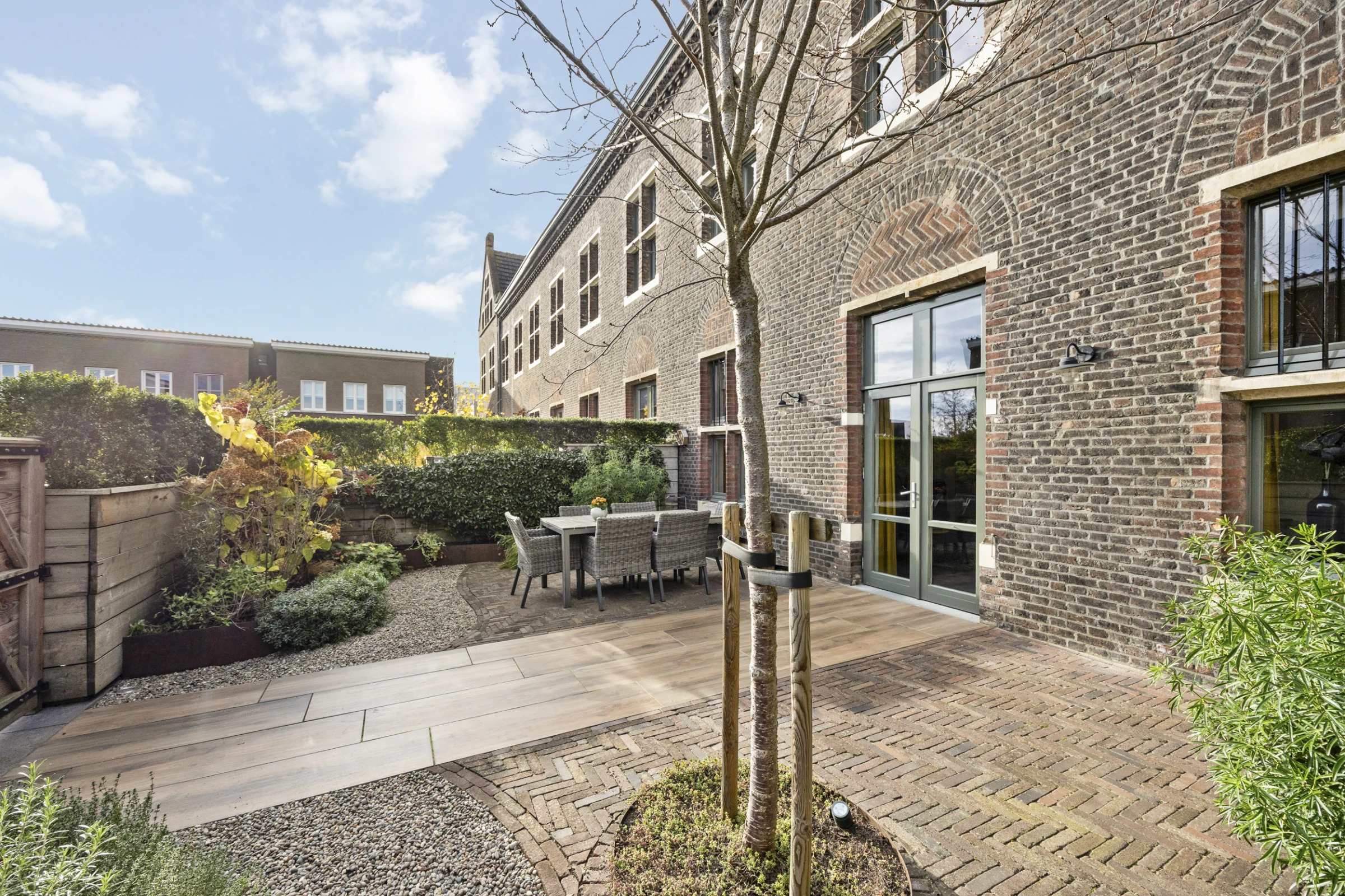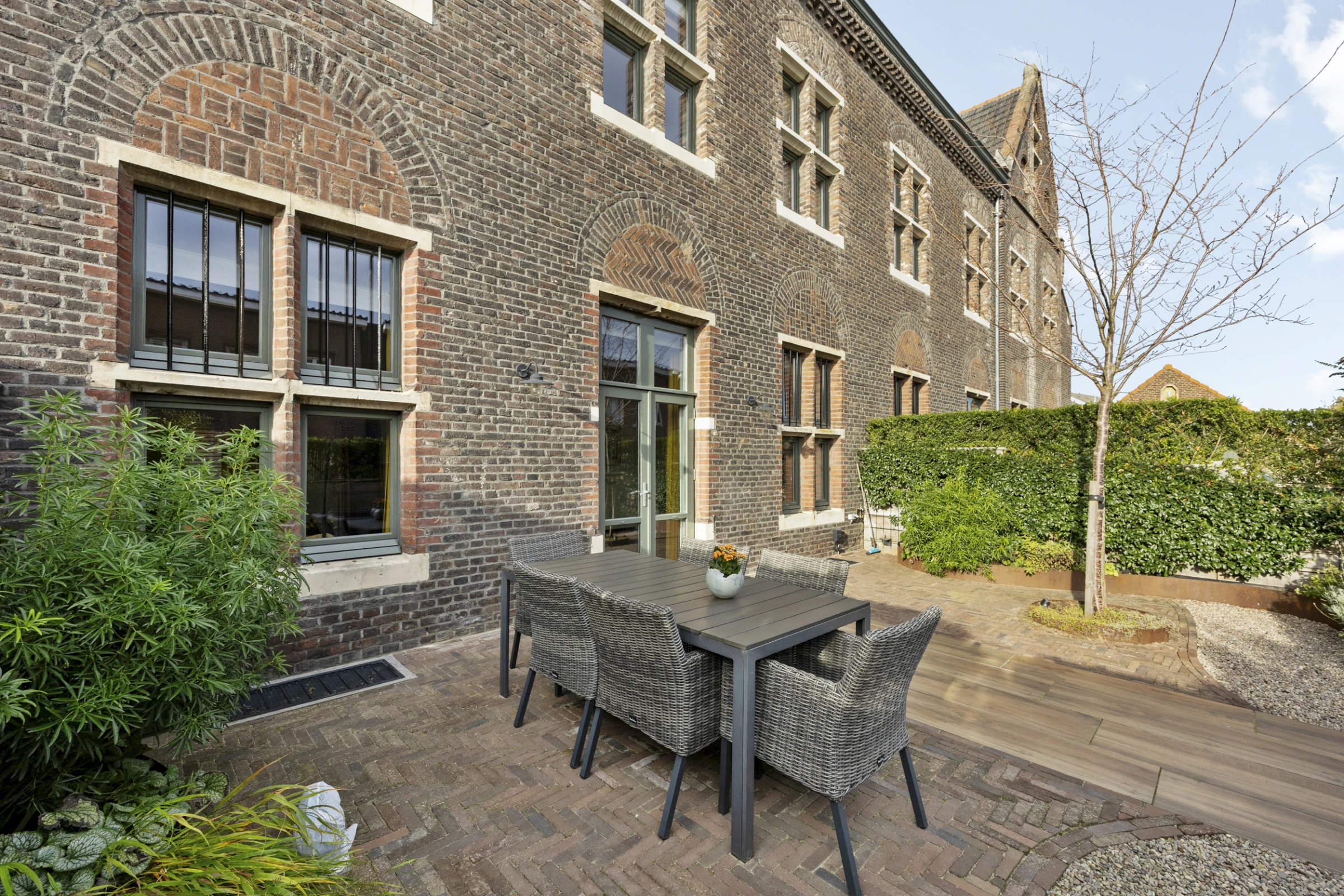 Tenslotte heeft dit sfeervolle herenhuis nog een heerlijke en keurig aangelegde tuin, waar je kunt genieten van de gunstige ligging met veel zon. Deze tuin is onderhoudsvriendelijk aangelegd, met een groot terras, maar beschikt toch over flink wat groen en beplanting. De tuin is gelegen op het zuidoosten en heeft een eigen achterom, welke o.a. leidt naar de parkeergarage. In deze parkeergarage beschikt deze woning over 2 parkeerplaatsen en een eigen berging.