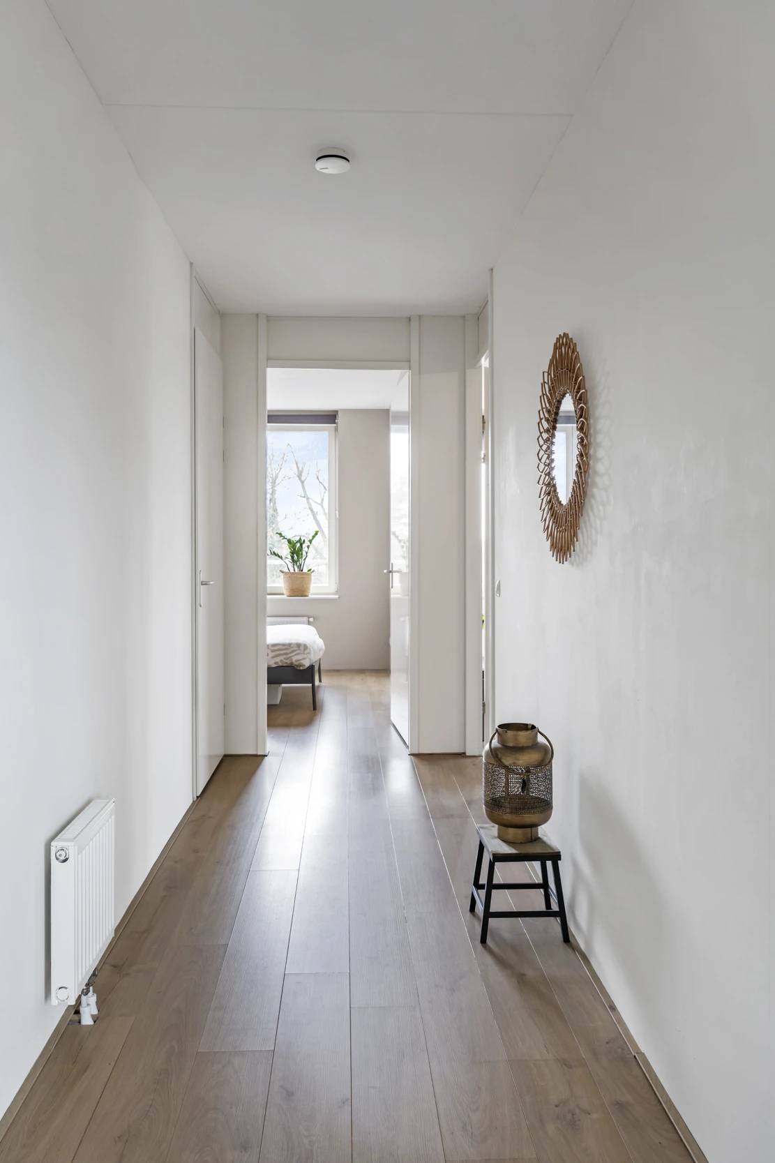 De entree van dit fijne appartement ligt op 1ste verdieping. Je komt binnen in de hal en die geeft toegang tot de diverse kamers.