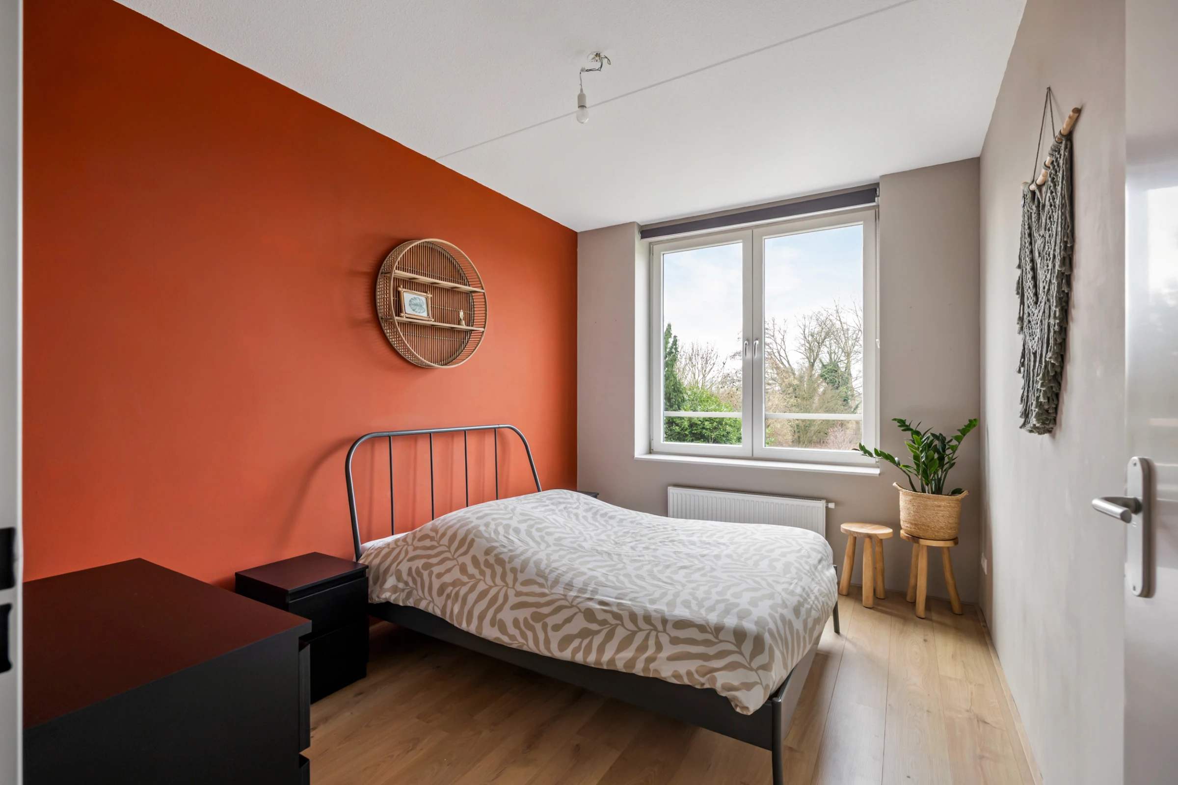 De 2 slaapkamers hebben een keurig niveau van afwerking en de hoofdslaapkamer ligt aan de achterzijde van het appartement. Vanuit het raam kijk je heerlijk weg over het groen van de gezamenlijke binnentuin en naar de omliggende natuur. Tenslotte heeft het appartement nog een 2e berging, waar de CV combiketel (Vaillant, eigendom) en WTW unit (warmte-terug-win) zijn geplaatst.