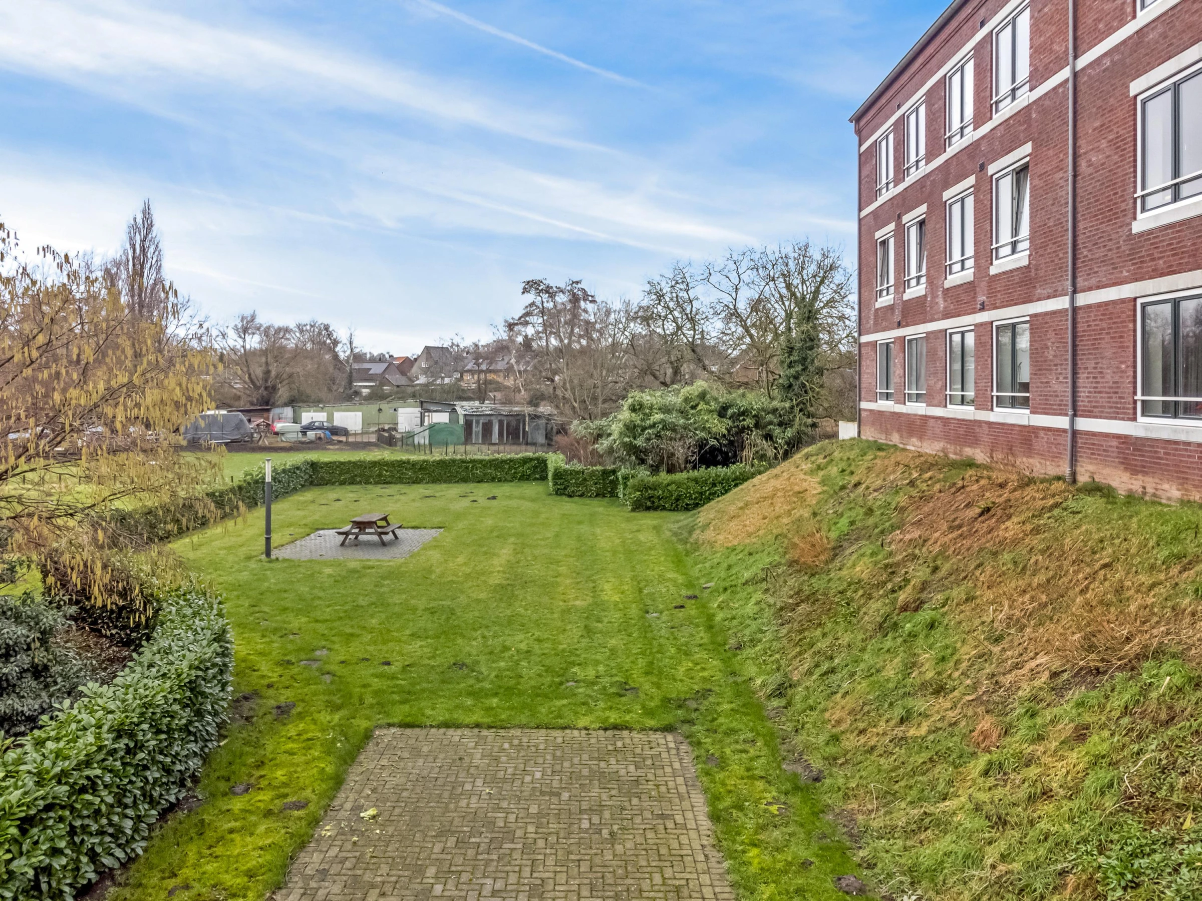 Dit complex ligt op een heerlijk groen en ruim terrein, waar alle bewoners van de 16 appartementen samen gebruik van mogen maken. De tuin is groot genoeg om elkaar niet in de weg te zitten, maar wie weet ga je wel samen genieten van gezellige barbecues en lange (zomer)avonden.