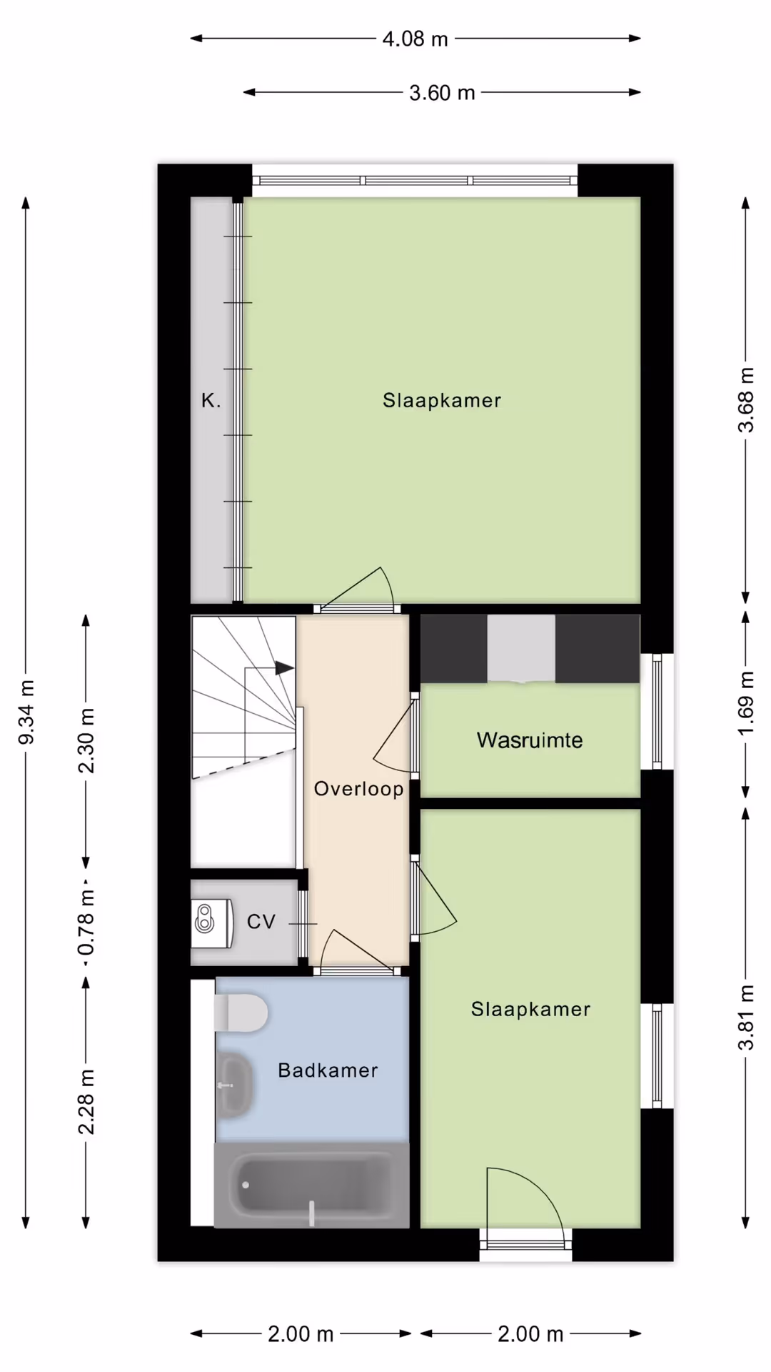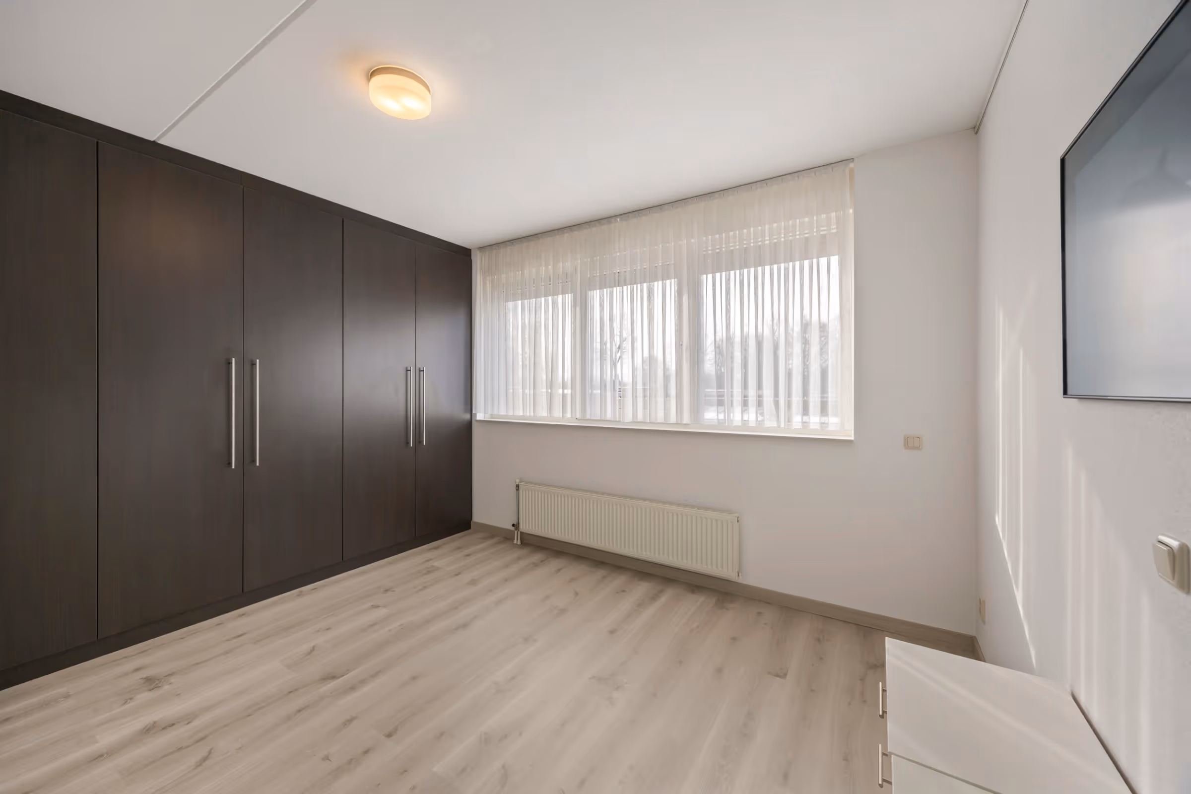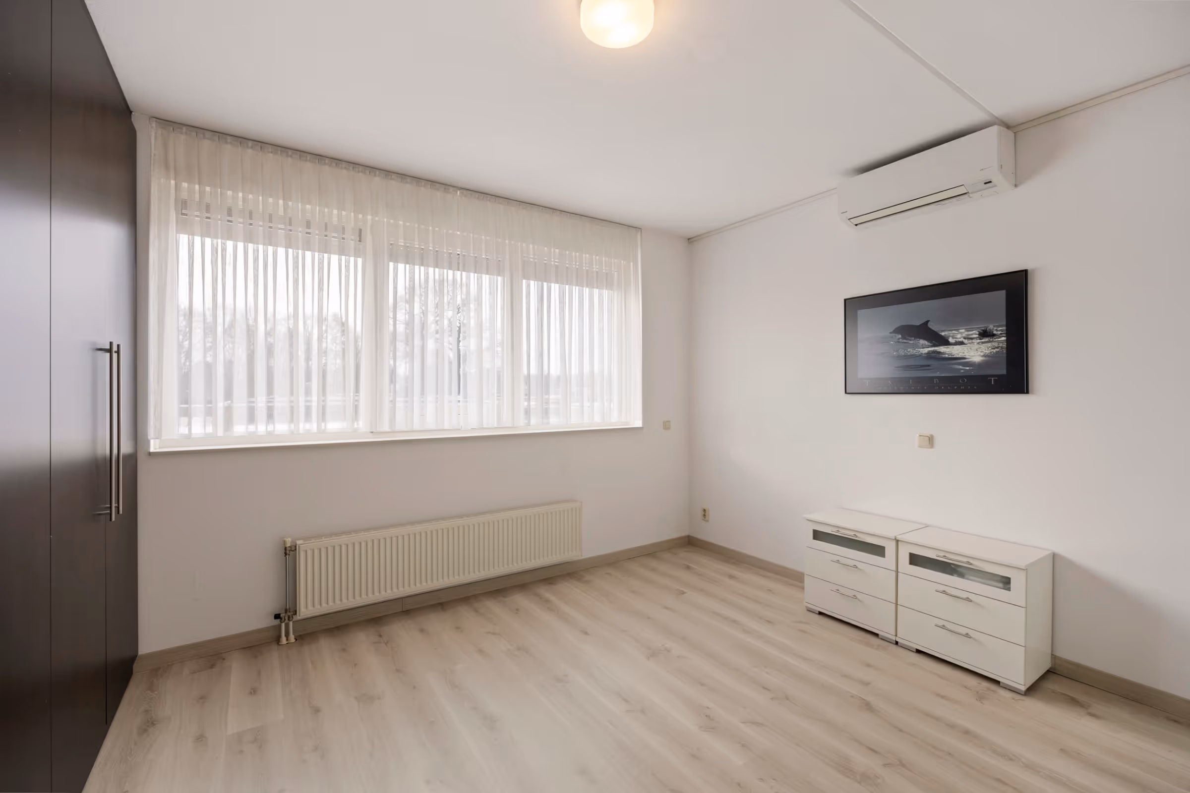 Via de overloop op de 1e verdieping zijn de badkamer en 3 (slaap)kamers bereikbaar. Alle 3 deze kamers hebben een keurig niveau van afwerking en zij beschikken over kozijnen met HR++ beglazing. Verder hebben 2 slaapkamers, net als de begane grond, keurige laminaatvloeren. De 3e kamer is momenteel als wasruimte in gebruik en deze heeft een tegelvloer. De hoofdslaapkamer is gelegen aan de achterzijde en heeft stijlvolle kastenwand en een airco (2017). De geheel betegelde badkamer bestaat uit een ligbad met douchecombinatie, 2e toilet en wastafel. Tenslotte ligt op deze verdieping nog een bergkast, waar de CV combiketel is geplaatst (Nefit, eigendom, 2018).