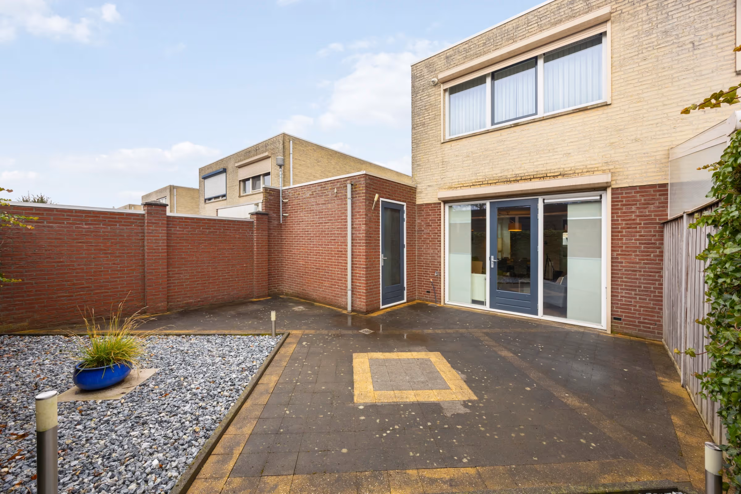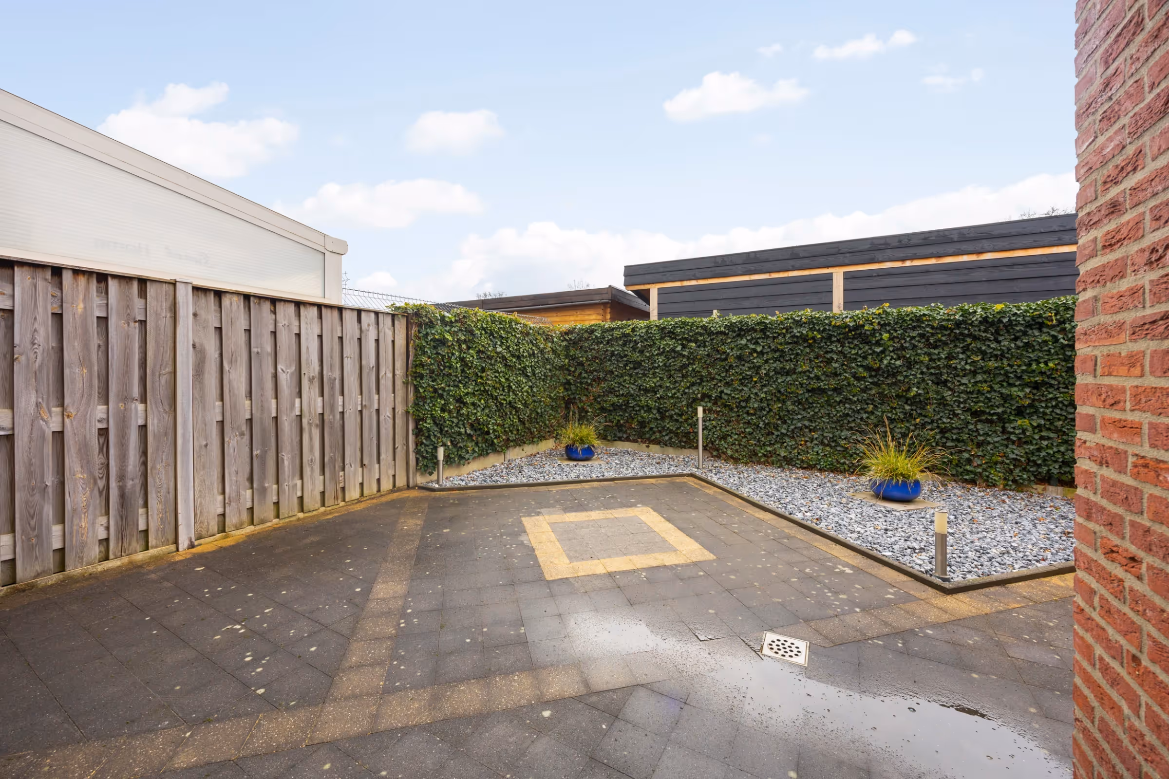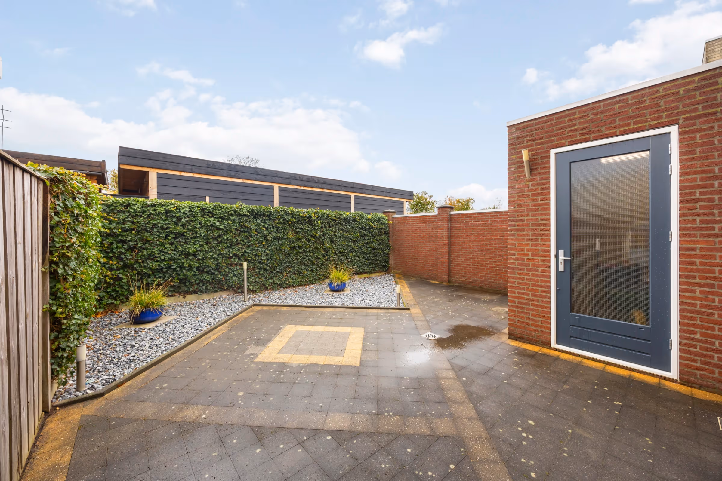 De achtertuin van dit fijne woonhuis is onderhoudsvriendelijk aangelegd met een groot terras en grind. De tuin is geheel omheind en gunstig gelegen op het Zuiden. Verder is de garage via de tuin te bereiken. Deze garage is verlengd (totale lengte is 7,8 meter) en herbergt enkele inbouwkasten en de collector van de zonnepanelen. Ook heeft de garage een elektrische sectionaalpoort. Aan de voorzijde heeft dit fijne woonhuis tenslotte nog een eigen oprit.