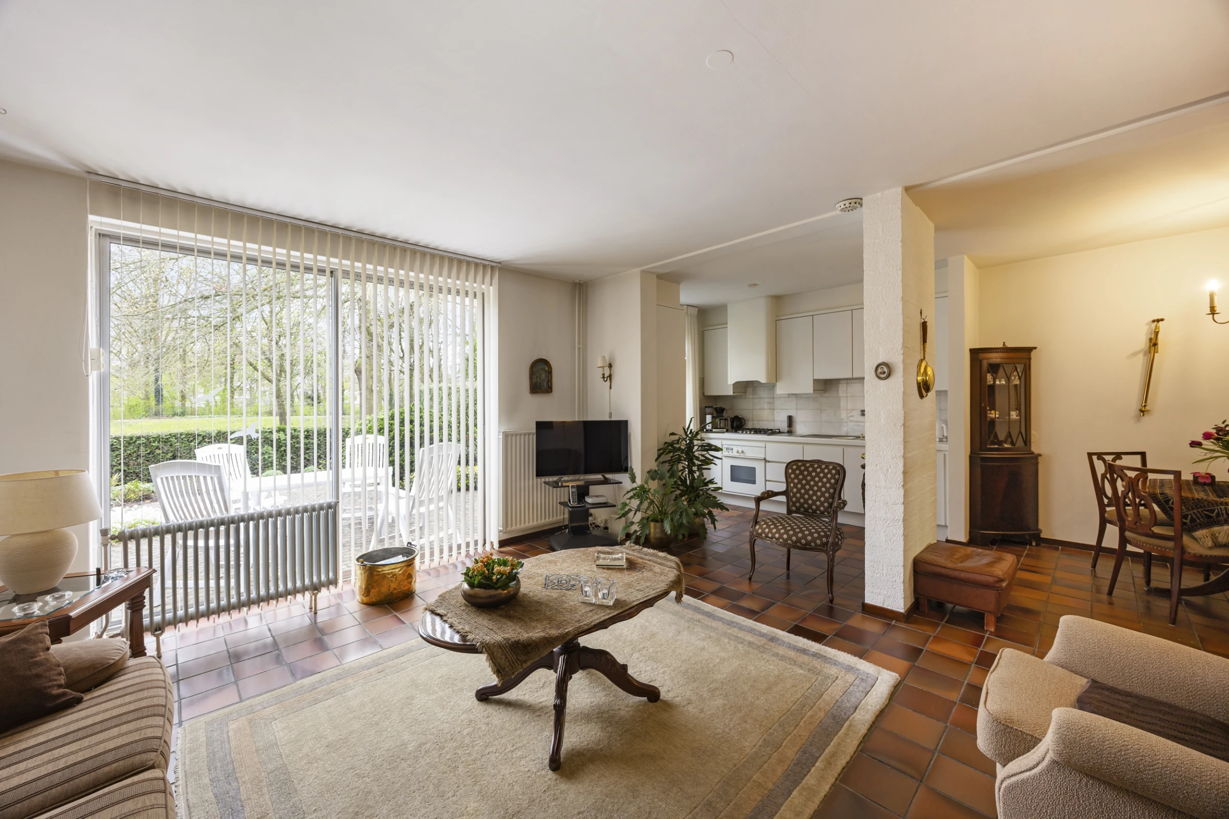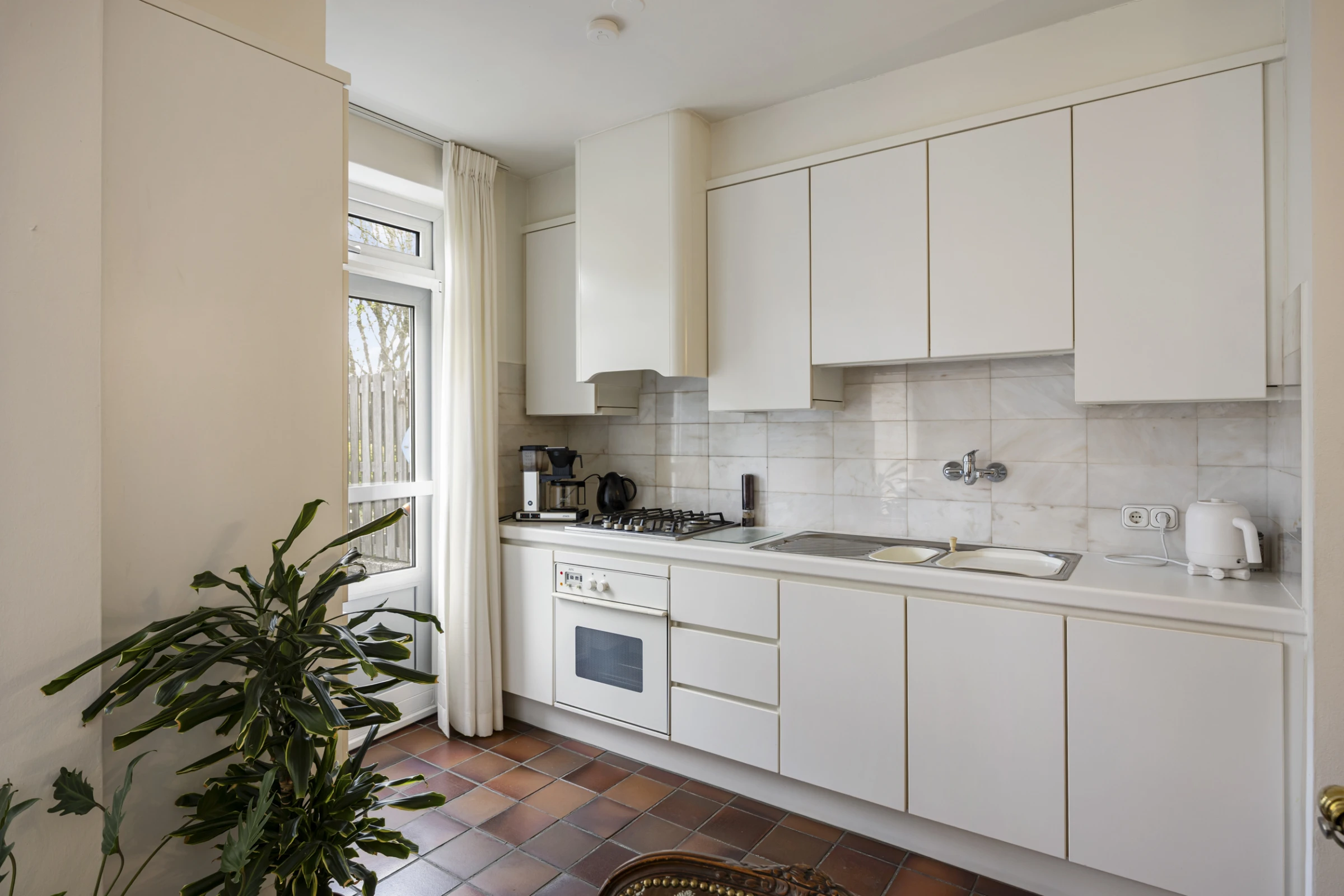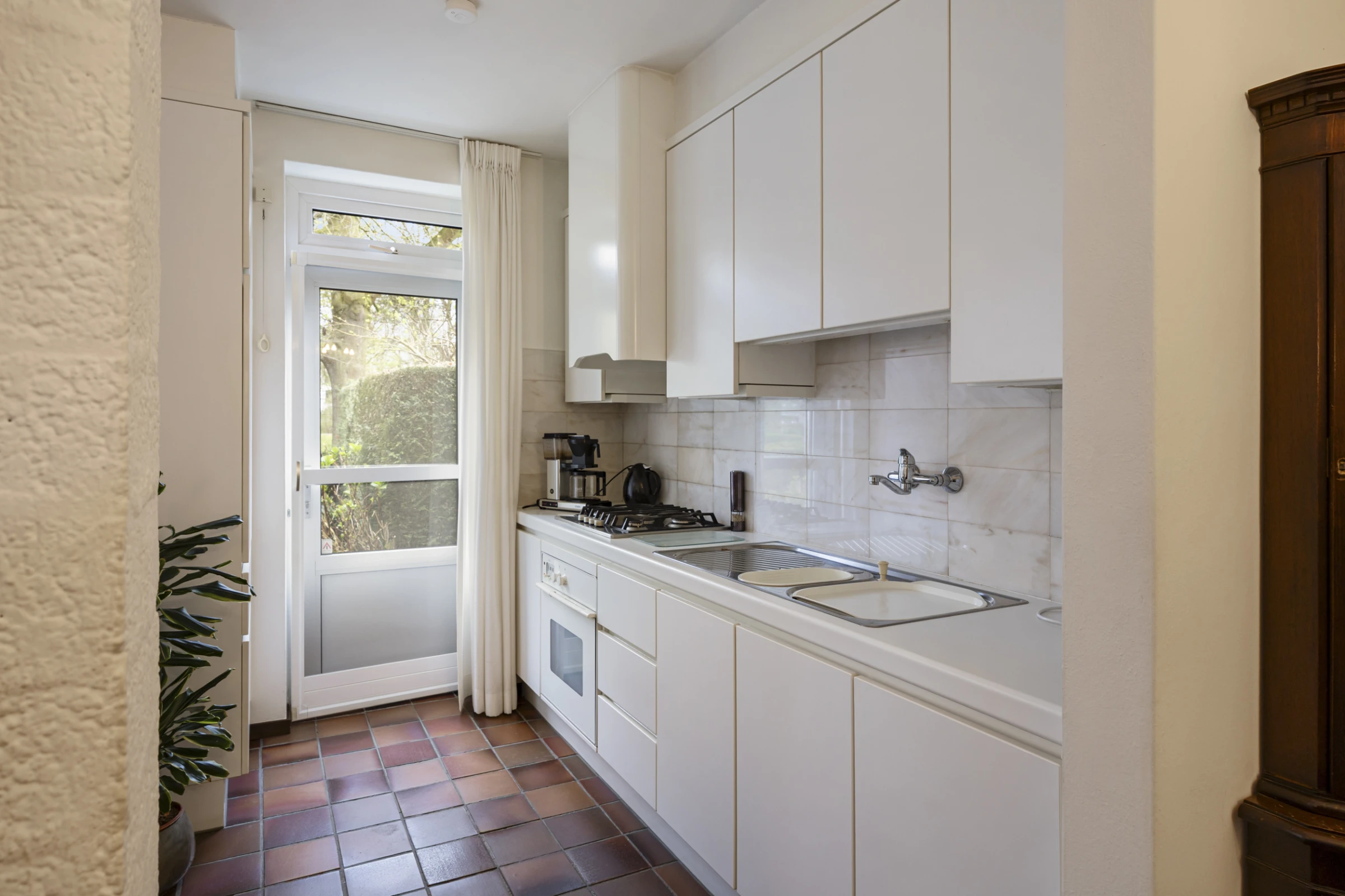 Via de entreehal, waar tevens het gastentoilet met fonteintje en de meterkast zijn gelegen, kom je zowel in de woonkamer/keuken, als in de riante berging. De woonkamer ligt aan de achterzijde van de woning en heeft een mooi zicht op de tuin. De woonkamer beschikt over een tegelvloer en heeft een airco (2022) die kan koelen en verwarmen. De keuken staat in open verbinding met de woonkamer en heeft een eenvoudig keukenblok. Dit keukenblok is voorzien van de volgende inbouwapparatuur: 4-pits gasfornuis, afzuigkap, oven en koel/vries combinatie. De riante berging bevat momenteel de aansluitpunten voor het witgoed. De berging heeft verwarming en kan bij de woonkamer betrokken worden, waardoor de woonkamer flink in ruimte toe kan nemen.