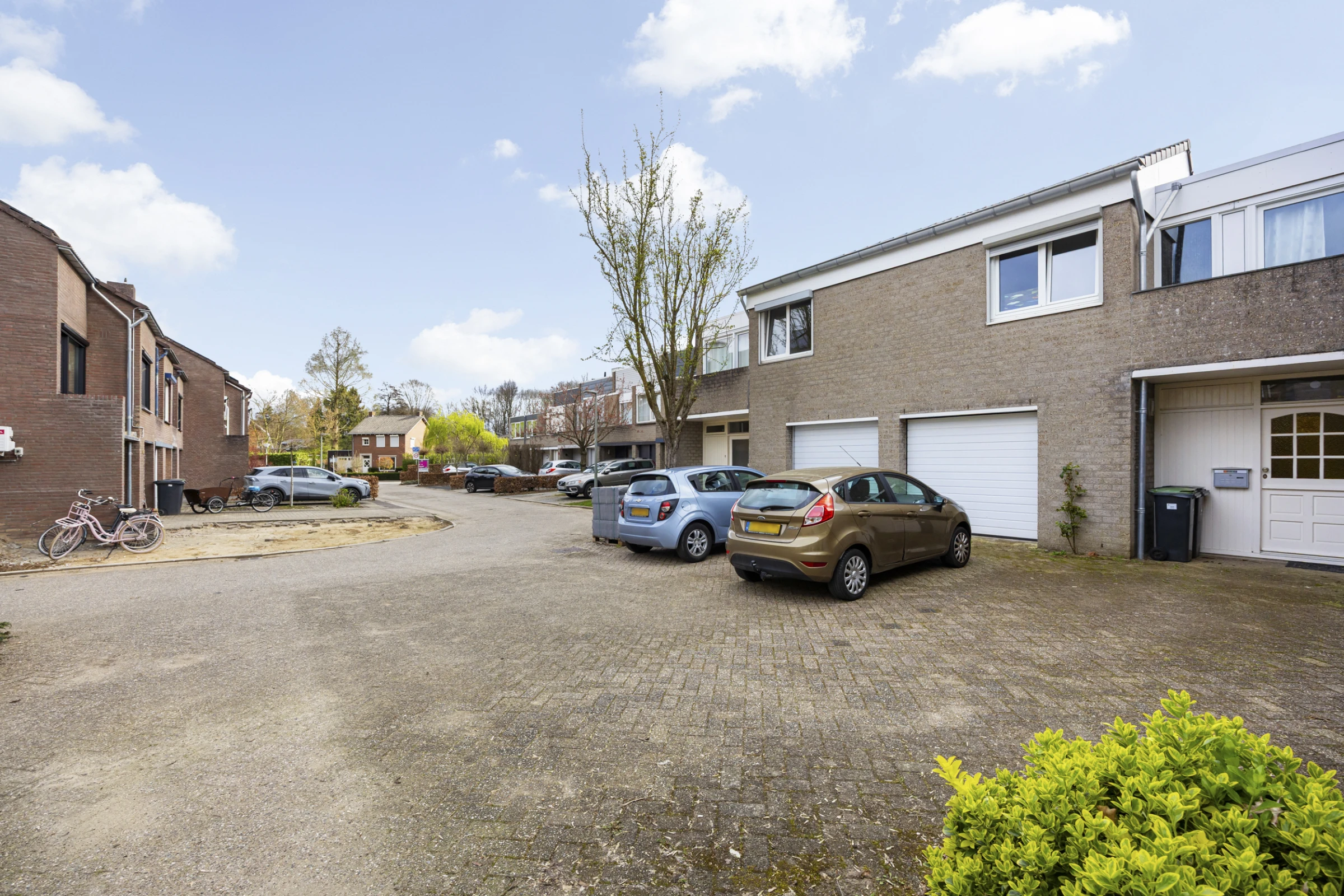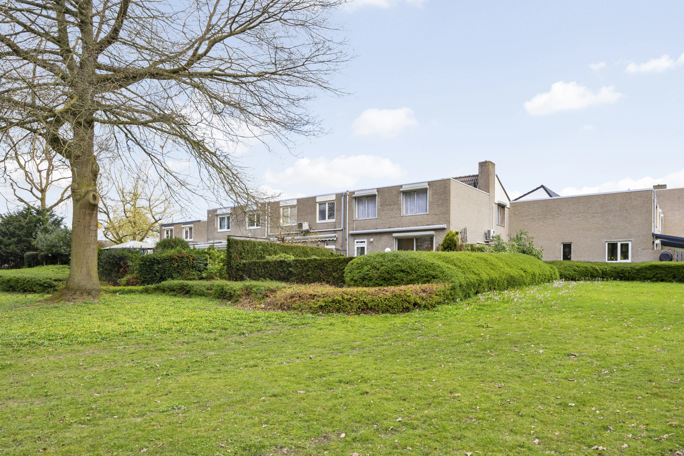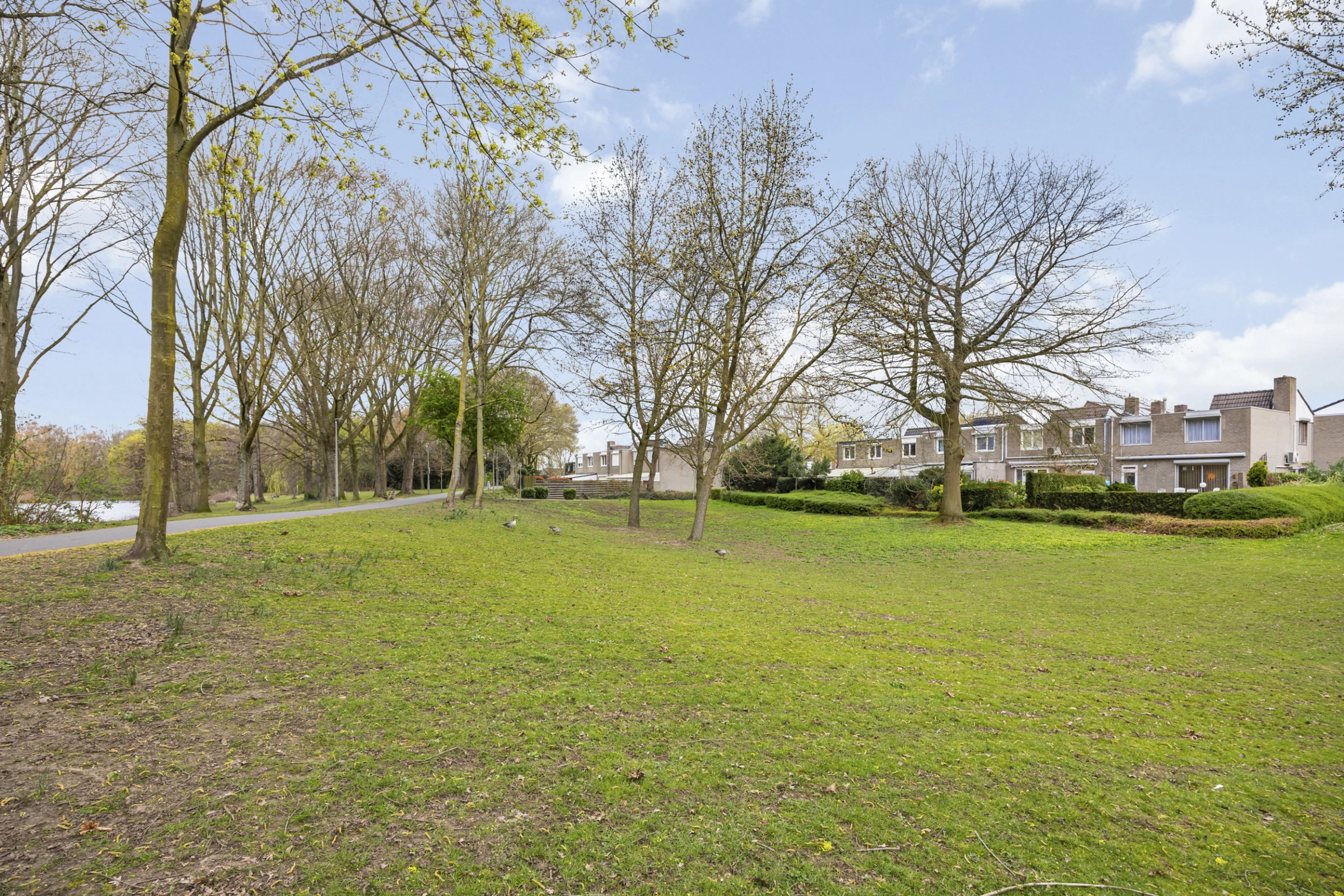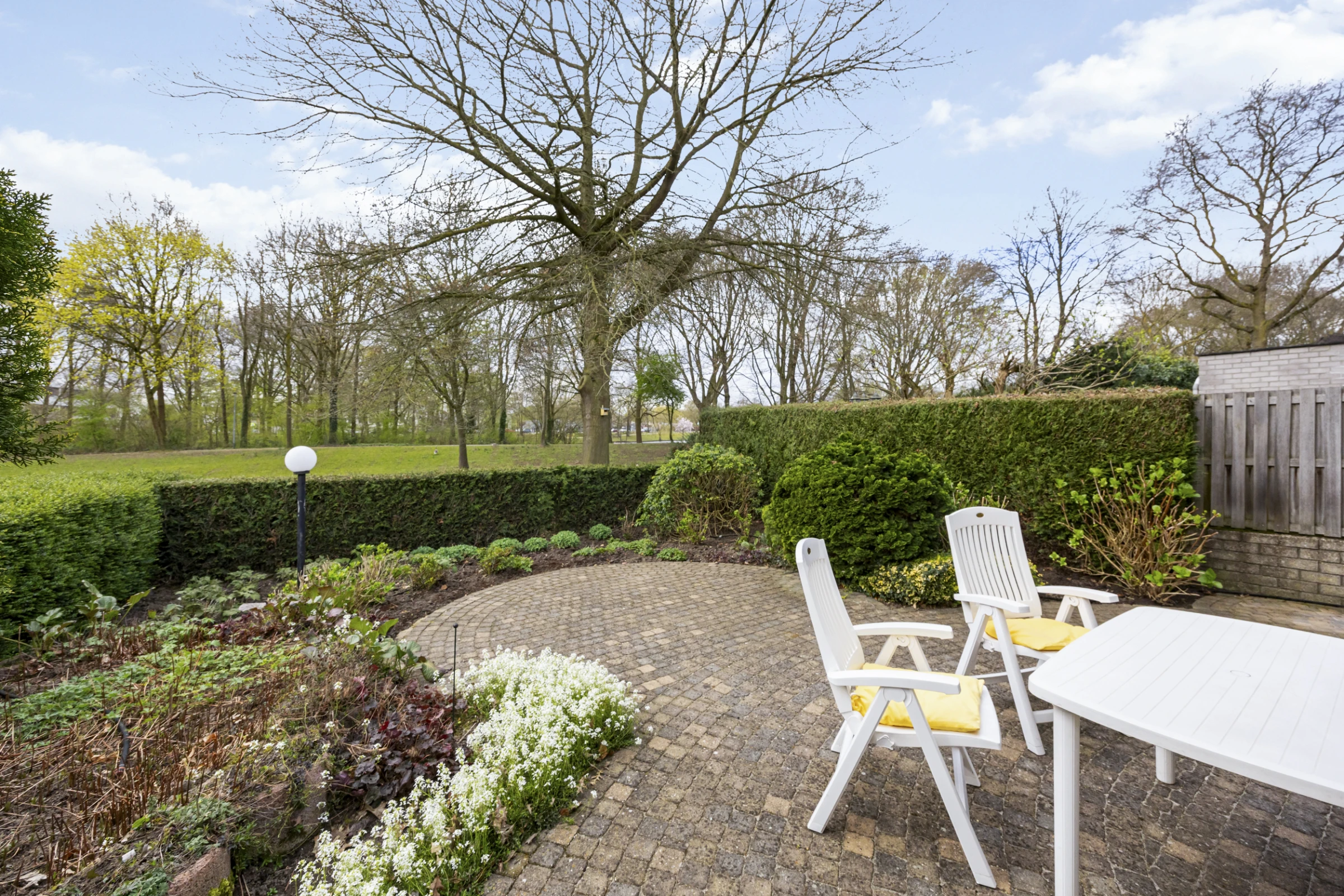 De achtertuin van dit fijne woonhuis heeft een prachtige ligging met uitzicht over het park en de vijver in Maasniel. De tuin zelf is voorzien van beplanting en een terras met sierbestrating. Behalve het fraaie uitzicht heeft de tuin ook een gunstige ligging op het zuiden.