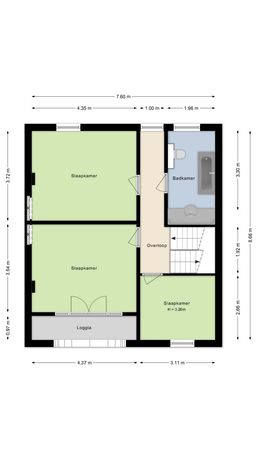 Via de statige trappartij is de overloop op de 1e verdieping te bereiken. Hier zijn 3 ruime slaapkamers en de badkamer gelegen. De hoofdslaapkamer ligt aan de voorzijde van dit sfeervolle woonhuis en beschikt over een loggia/balkon, hetgeen dit huis nog meer charme en grandeur geeft. Voorts heeft de woning nog 2 ruime slaapkamers en alle 3 de slaapkamers hebben karakteristieke houten vloeren. De badkamer ligt aan de achterzijde en bestaat uit een douchecabine, ligbad, wastafelmeubel en 2e toilet.