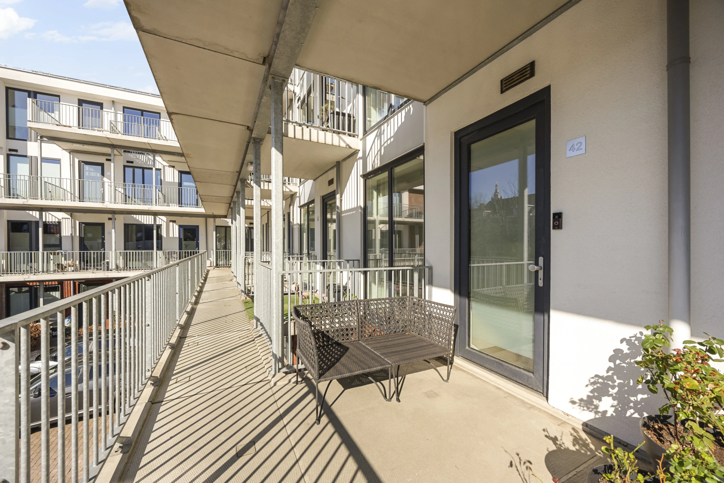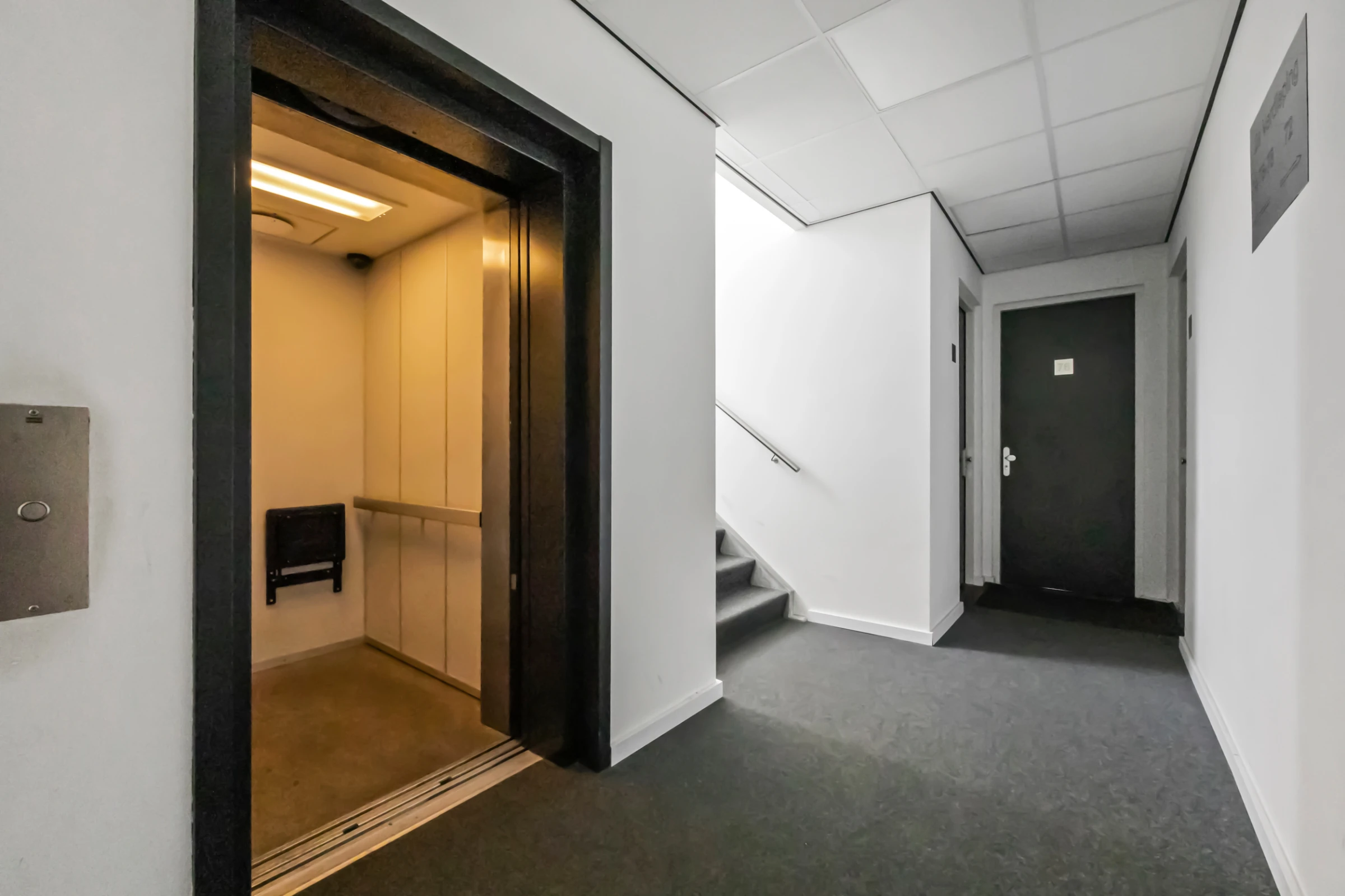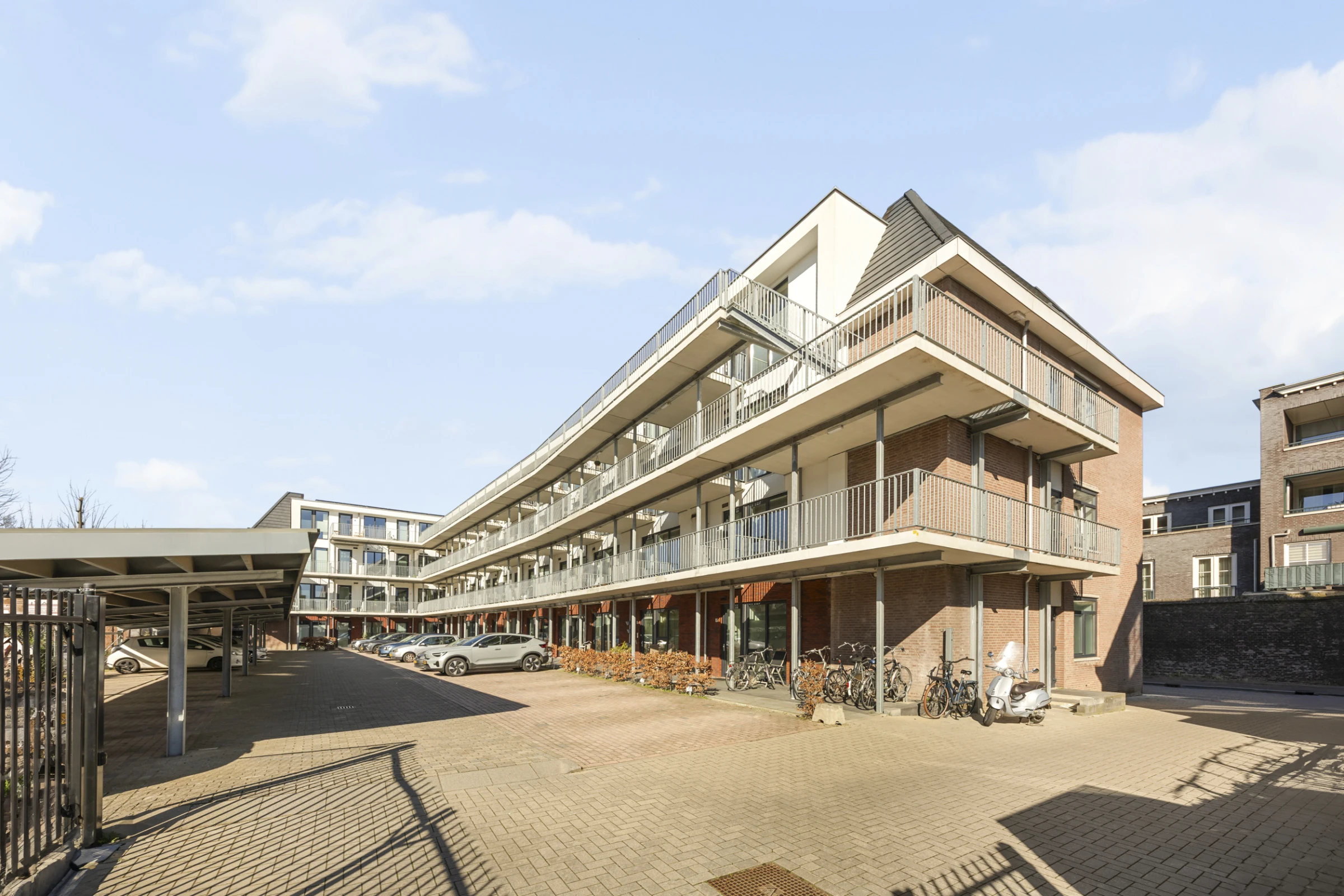 Centrale entreehal met brievenbussen en intercominstallatie. Lift en trapopgang naar de verdiepingen. Naast het gebouw ligt een overdekte fietsenstalling voor de bewoners van het complex en bij dit appartement heb je ook een eigen privé parkeerplaats, op het binnenterrein van het complex.