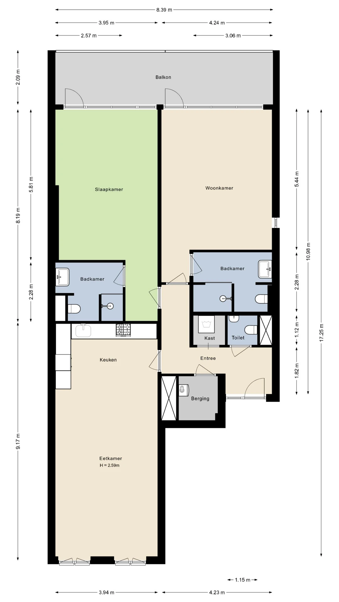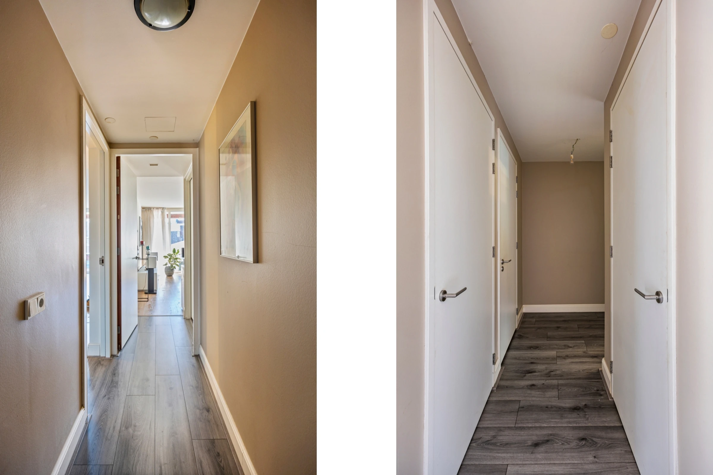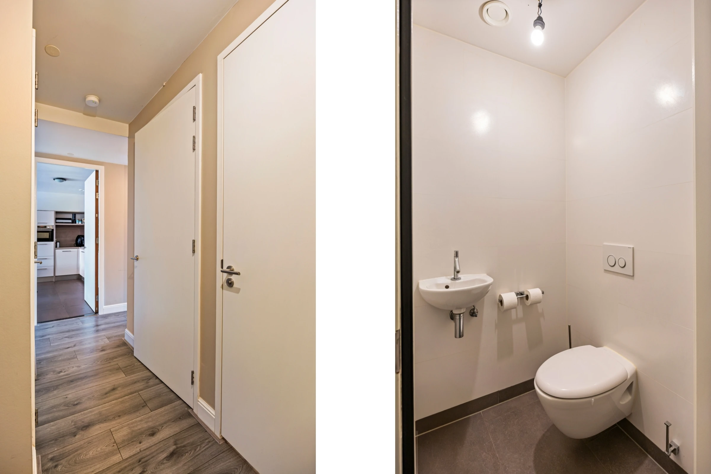 Het appartement is gelegen op de 2e verdieping. U komt binnen in de entreehal, waar naast een moderne meterkast en het gastentoilet, toegang is tot de diverse kamers.