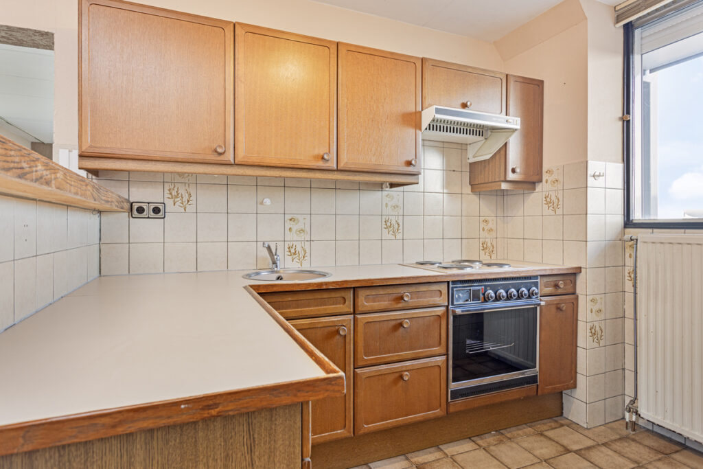 Verder heeft het appartement een keuken, met als inbouwapparatuur een kookplaat, afzuigkap, koelkast, vriezer en oven.