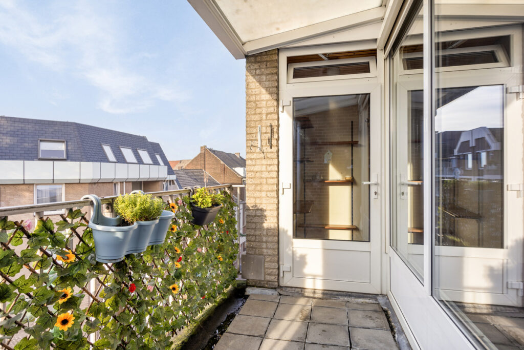 Vanuit de woonkamer is het balkon te bereiken. Deze fijne buitenruimte is voldoende ruim en kijkt mooi weg, richting de tegenovergelegen gebouwen en de Oranjerie.