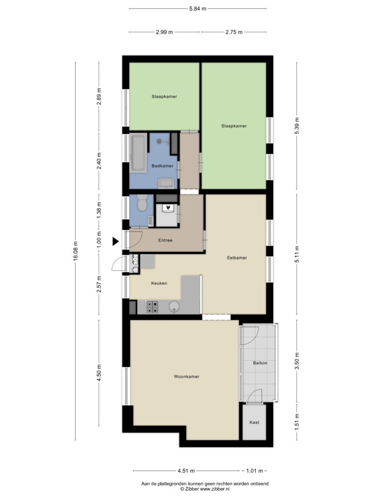 Het appartement zelf ligt op de 3e verdieping. Je komt binnen in de hal en die geeft toegang tot diverse kamers.